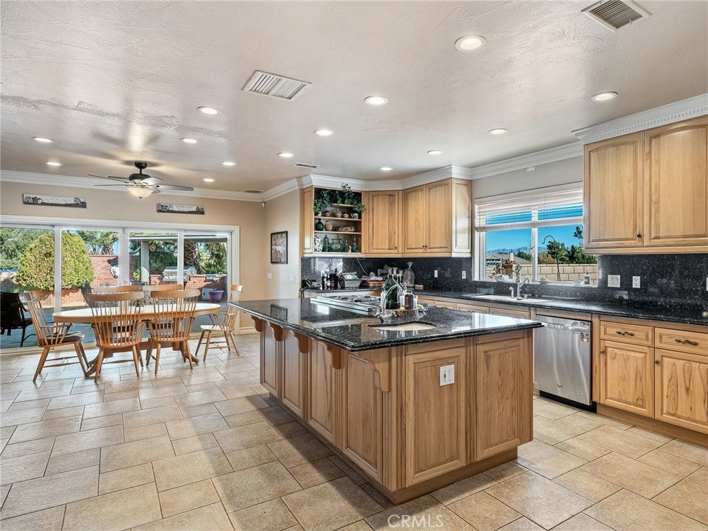 STUNNING CUSTOM HOME!! Discover this amazing 3725 sq ft home on nearly 2 ACRES in the desirable OAK HILLS area - An exceptional blend of luxury, comfort and thoughtful design! Step inside to a warm and inviting living space centered around a beautiful BRICK FIREPLACE, CUSTOM BUILT-IN ENTERTAINMENT CENTER, GORGEOUS TILE FLOORING and incredible windows bringing in natural light. HIGH CEILINGS and OPEN FLOOR PLAN create an inviting atmosphere - perfect for entertaining or simply enjoying family time. The GOURMET KITCHEN is truly the heart of the home, featuring a MASSIVE CENTER ISLAND, GRANITE COUNTERTOPS, VIKING APPLIANCES, DOUBLE OVENS, WALK-IN PANTRY AND RICH HICKORY WOOD CABINETS. A really nice oversized laundry room with extra cabinets designed for ultimate convenience. The Master suite is impressive with a fireplace, separate sitting room and large bathroom with separate vanities, LARGE SOAKING TUB, AWESOME WALK-IN SHOWER, AND SPACIOUS WALK-IN CLOSET with built ins! Relax in your an impressive park-like back yard! Step into an entertainer's paradise complete with LARGE STUCCO COVERED BACK PATIO, OUTDOOR KITCHEN, CHARMING GAZEBO, palm trees, TRANQUIL KOI POND WITH WATERFALL AND COZY FIRE PIT - for nice gatherings or peaceful evenings at home. Also a SECRET GARDEN area with water fountain and perennials! Adding to its appeal, the property boasts an AMAZING 1850 SQ FT WORKSHOP!! Ideal for hobbyists, professionals or anyone in need of creating the ultimate home-based workspace. This huge work shop also has its own bathroom and TWO separate automatic double garage doors. EXTRA BONUS - COVERED RV PARKING (approximately 18x36) Every detail of this Oak Hills custom home has been crafted for beauty, function, and unforgettable living. Come see this breathtaking home!