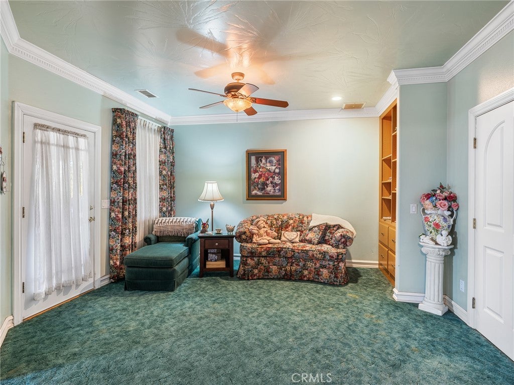 • Interior FeaturesBuilt-in Features, Ceiling Fan(s), Crown Molding, Granite Counters, High Ceilings, Pantry, All Bedrooms Down