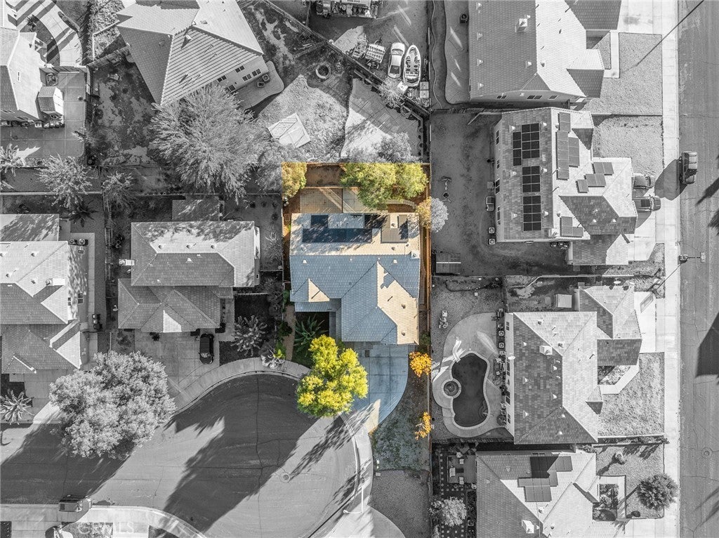 Welcome to 13802 Goldfinch Ct, a beautifully appointed home located on a quiet cul-de-sac in the heart of Victorville. Featuring PAID-OFF SOLAR, dual A/C units, and 3,480 sq. ft. of living space, this impressive two-story residence offers 5 bedrooms and 4 bathrooms on a 7,080 sq. ft. lot with an attached 3-car garage. Step inside to discover a spacious and functional layout, including a generous family room, a separate formal living area, and a large open kitchen with granite countertops and island—perfect for gatherings and entertaining. Downstairs also features beautiful wood built-ins, a large storage closet, and a convenient laundry room. Upstairs, a versatile extra-large loft provides the ideal flex space for a home office, play area, or media room. The expansive primary suite is a true retreat, complete with a private sitting area and dual walk-in closets for exceptional storage and comfort. The backyard offers privacy with a block wall, wood fencing, a patio for relaxing or entertaining, and easy-maintenance landscaping in the front. Located just minutes from the 15 freeway, this home is perfect for EASY COMMUTING while still offering the tranquility of a cul-de-sac setting. This home truly has it all—space, upgrades, and an ideal location. Come and see for yourself!