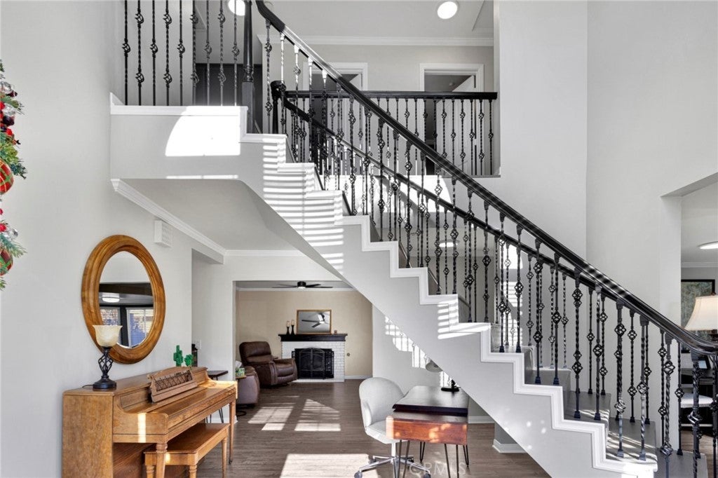 This home will WOW you from the moment you arrive! Arriving here you will love the corner lot with a cement pad for RV/trailer parking, located just a few steps from the lake and fishing area. The driveway & walkway was recently poured with newer cement to give a fresh feel to the exterior. Entering the home you are greeted by the most beautiful staircase adding to the WOW factor. Plenty of space for the whole family with a formal living and dining room, spacious kitchen and breakfast nook, and cozy family room with a beautiful fireplace perfect for those chilly nights. Down stairs there is a guest room and full bathroom and laundry room that leads to the garage. Up stairs are the remainder of the guest bed/bathrooms and the primary suite that will make you feel like you're on vacation every day with beautiful views from the balcony without the neighbors blocking it! Headed to the back yard there is an enclosed patio with a spa, the perfect mix of indoor/outdoor living space. The backyard feels very private and spacious with mature landscaping and a storage shed. There have been so many upgrades to this home since the current owners purchased it, including replacing the attic insulation, all new paint, flooring, and light fixtures throughout, the kitchen & every bathroom has been remodeled, the primary bedroom closet was custom built and new window screens. There is gas and electric hook ups for the dryer & spa, while the stove is natural gas!