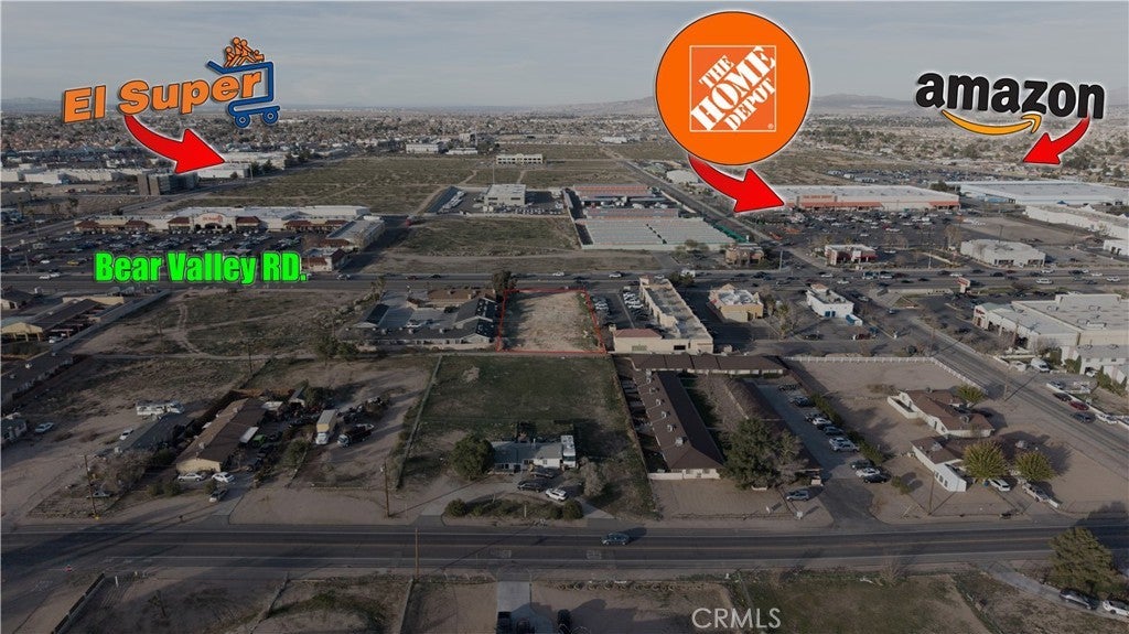 LOCATION, LOCATION, & LOCATION!! About 30,740 square feet or 0.70 of an acre of land located only 0.47 mile east from the busy Bear Valley Rd exit. About 107 feet of Bear Valley Rd frontage and 291 feet deep. All utilities including water, power, and sewer on Bear Valley Rd in front of the land. Surrounded by all major anchor type establishments including: Baker’s Drive Thru, Smart & Final, Dunkin Donuts, Arby’s, Skechers Warehouse Outlet, Jiffy Lube, Home Depot, Wiener schnitzel, 76 gas station, Big Brand Tire & Service, A1 Teriyaki, Dutch Bros, Starbucks, H&R Block and EL Super Shopping Complex. Huge 115,000 daily traffic counts and near signalized corner. STRATEGIC LOCATION!! Subject land is only a very few buildable lots that are left to develop near the freeway exit on Bear Valley Rd. An excellent opportunity to build any General Commercial or Retail type of businesses.
