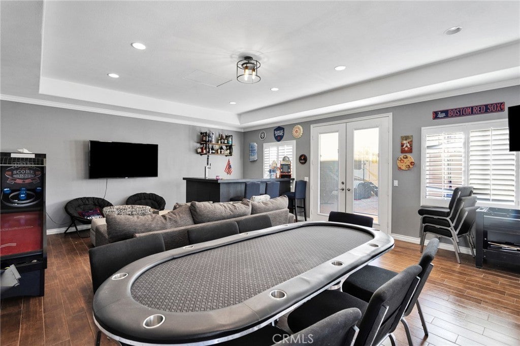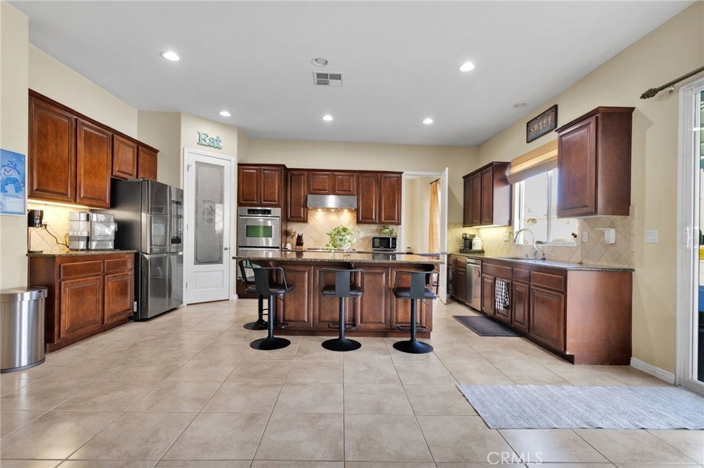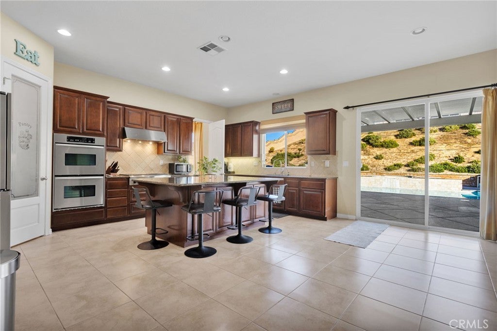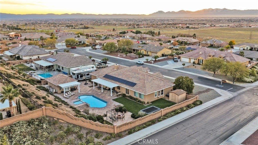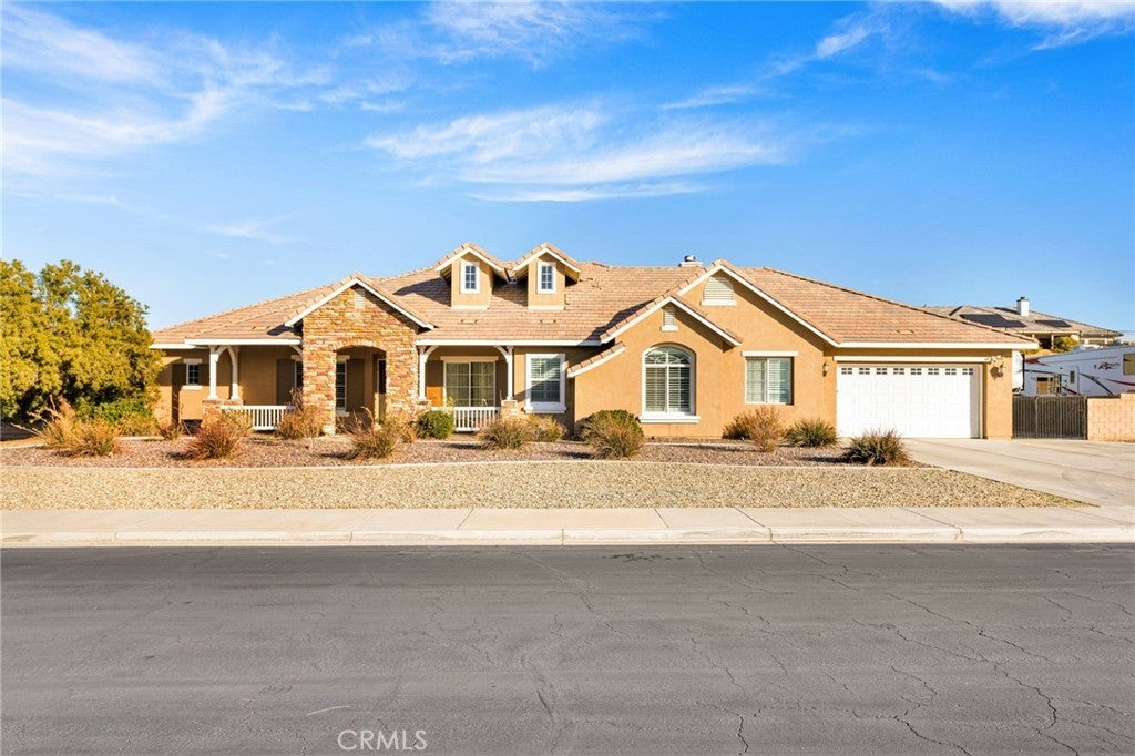 Life behind the gates is better, and this beautifully appointed Verandas residence proves it. Tucked away on a quiet cul-de-sac at 12389 Winesap Rd in Apple Valley, this refined home offers 5 bedrooms plus an office and 2.5 baths, combining comfort, space, and resort-style living in one of the area’s most sought-after gated communities. The home has been meticulously cared for and features paid-off solar approximately five years old with a long-term warranty, elegant tile flooring throughout, a formal dining room, built-in speakers, and a warm living room fireplace that sets the tone for everyday luxury. The chef’s kitchen is both stylish and functional with granite countertops, a walk-in pantry, and a KitchenAid commercial-style gas range, ideal for entertaining or everyday living. The primary suite is a true retreat, showcasing granite counters, dual vanities with a dedicated makeup area, a Jacuzzi tub, glass shower, and a custom real-wood walk-in closet system. Secondary bedrooms offer thoughtful details including built-in closet systems, while the laundry room includes cabinetry and counter space for added convenience. Step outside to a private backyard designed for relaxation and entertaining, complete with a saltwater pool and heater, built-in BBQ island, firepit, inground trampoline, RV parking, and a Shed World storage shed. A standout feature is the fully permitted 520 sq ft detached pool house or game room with tile floors, crown molding, electric, and a split HVAC system; this incredible space is not included in the home’s square footage and adds exceptional versatility. Additional highlights include a 3-car tandem attached garage with insulated doors, built-in cabinets that will likely stay, and a paid-off water softener. All of this is located just minutes from Sprouts, Raising Canes, 5 Below, and Jess Ranch Marketplace, offering both privacy and convenience. This is more than a home; it’s a lifestyle.
