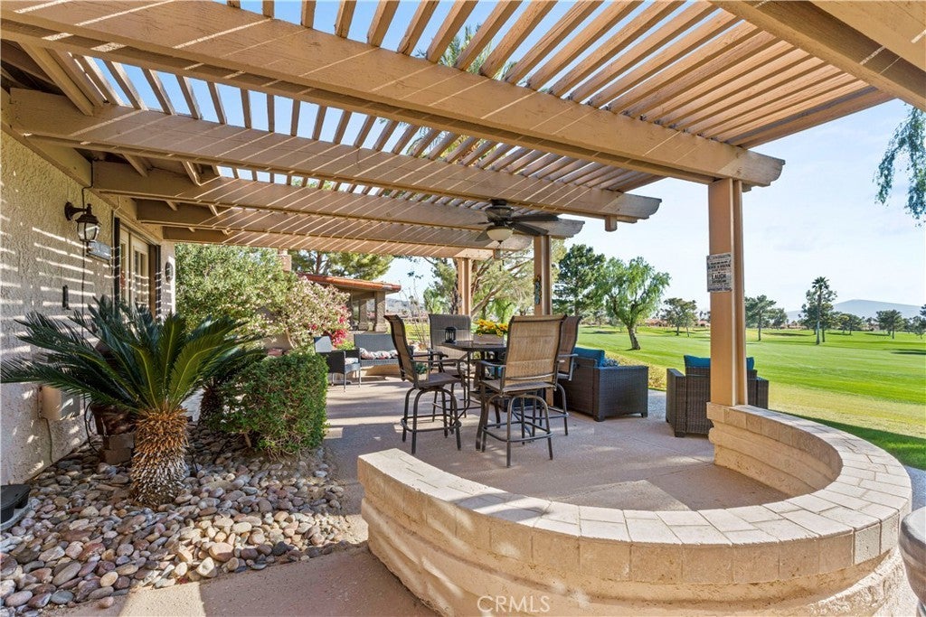 HUGE PRICE REDUCTION !!! GORGEOUS GOLF COURSE HOME!!! Seller is motivated!!! Pride of ownership is the best way to describe this incredible home located on the 13th fairway in a highly desirable neighborhood of Mission Lakes in Desert Hot Springs. Upon entering this stunning home you will observe all the custom details. So many upgrades including lovely tile flooring, two tone paint, upgraded lighting, paid solar and so much more. The kitchen has beautiful wood cabinets, granite counter tops with breakfast bar seating, and stainless steel appliances. The spacious living room has a cozy gas fireplace, custom built in wall unit that has lights, TV, stereo system and surround sound, beautiful ceiling fan and French doors leading to the rear yard, in addition it has a lovely dining area adjacent to the living room and kitchen. This wonderful home has a floor plan perfect for entertaining. The bedrooms are all generous in size, the primary bedroom offers large walk-in closet, french doors leading to the rear yard and also has double doors connecting to additional room which is perfect for office or sitting room. The primary bathroom is gorgeous with soaking tub, separate shower and dual vanities. The additional bedrooms offer ceiling fans and picturesque arched windows. The guest bathrooms are lovely and beautifully upgraded. Upon exiting to the rear yard you will see the beautiful golf course and surroundings perfect to sit and have morning coffee or enjoy your evenings relaxing in your own spa. The oversized 2 car garage also has golf cart area with rear door leading to the golf course. This wonderful community has so much to offer swimming pools, tennis courts, pickleball, restaurants, fitness center and more! A must see home! Make your appt. today to see this lovely home!