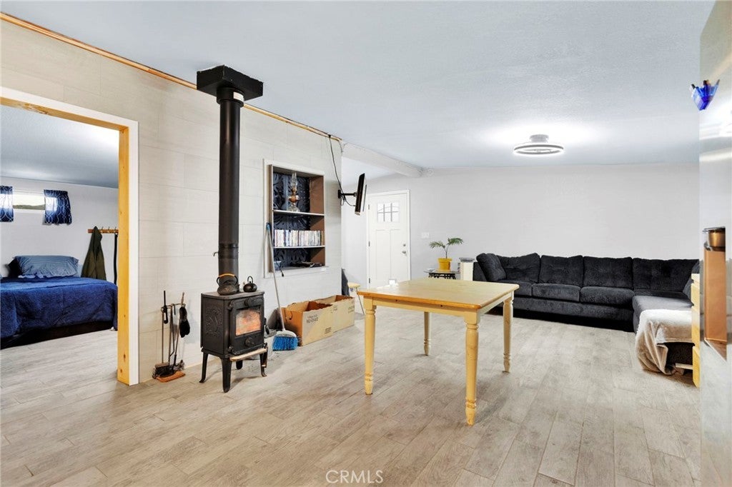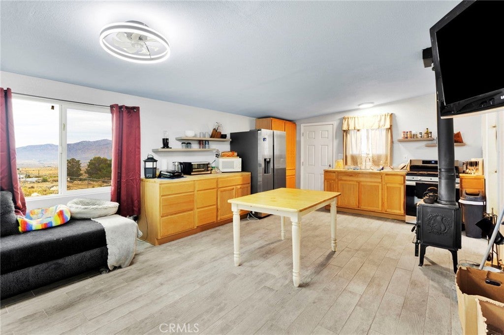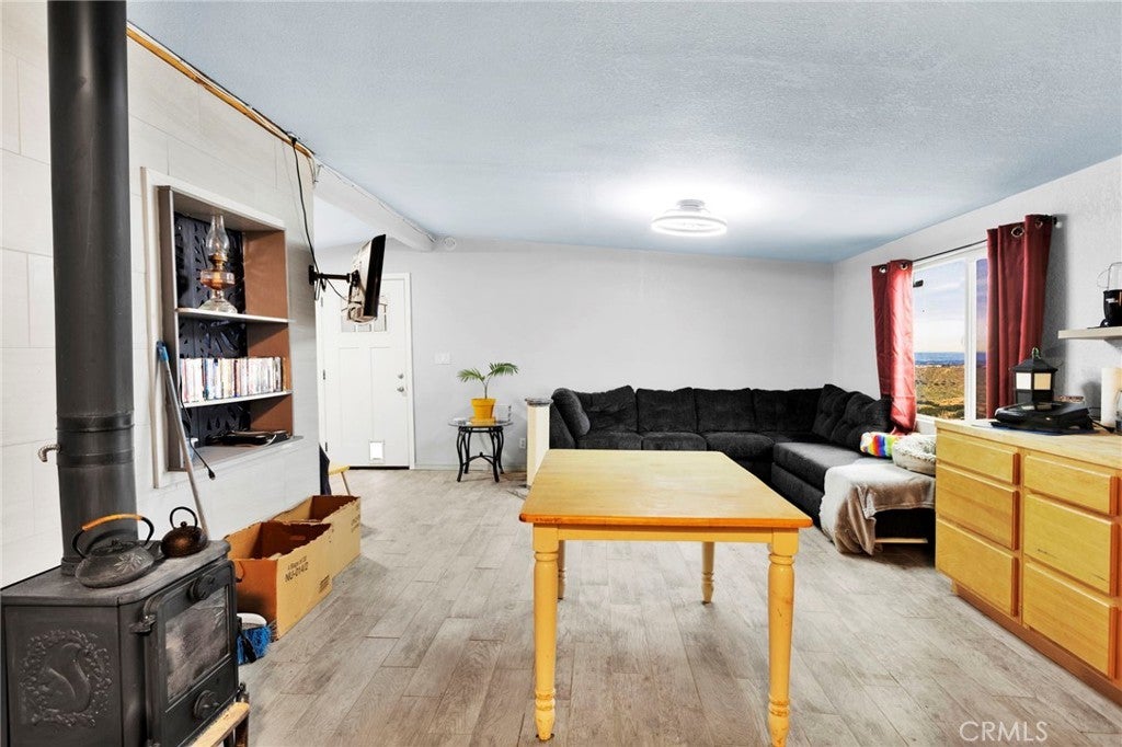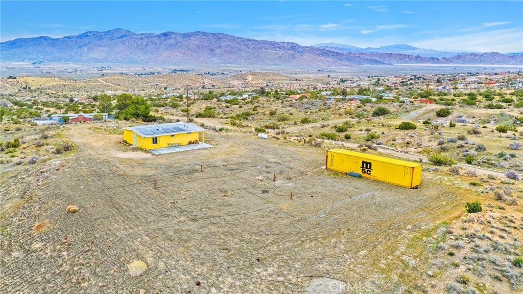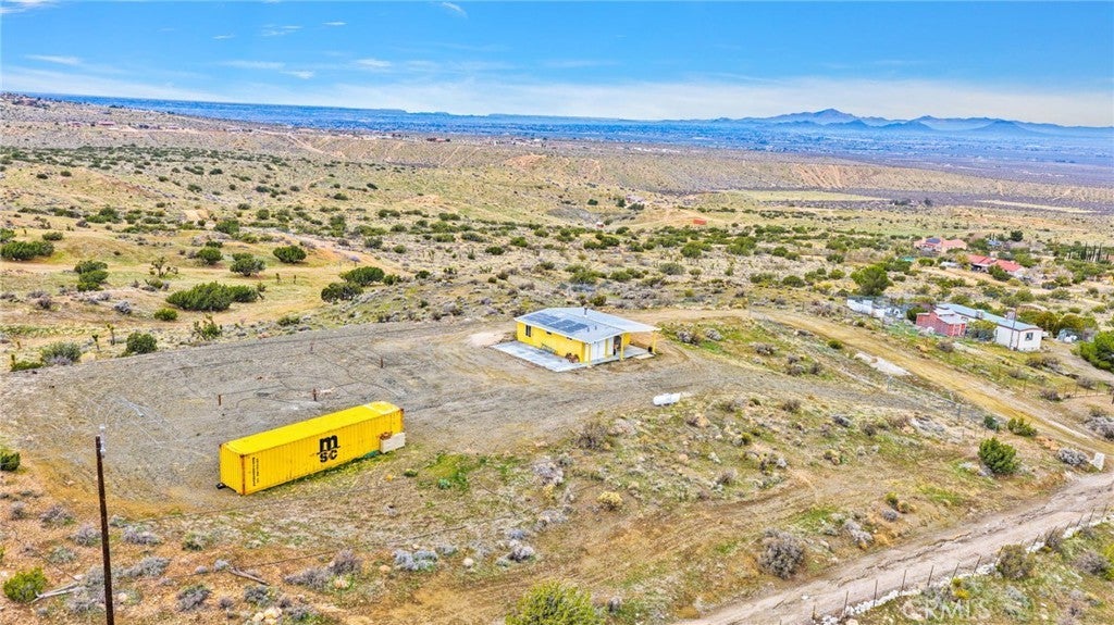 Escape the ordinary and embrace the extraordinary with this charming one-bedroom, one-bathroom retreat perched on an expansive five-acre canvas of desert beauty. This isn't just a home—it's a lifestyle waiting to unfold. Wake up to breathtaking 360-degree panoramas showcasing majestic mountain silhouettes, sweeping valley vistas, and twinkling city lights that transform your evenings into a private light show. The generous lot offers incredible flexibility, featuring a stair-stacked configuration that's perfectly suited for subdivision, allowing you to create your own secluded compound or investment opportunity. Living completely off-grid has never looked this good. Solar panels paired with battery storage mean you can wave goodbye to electric bills forever, while a large-capacity propane tank handles your additional energy needs. Recent updates include a fresh roof, exterior paint, and a welcoming covered front patio—your personal front-row seat to spectacular desert sunsets. Step inside to discover thoughtfully renovated interiors featuring new flooring throughout, a beautifully tiled walk-in shower, updated vanity, modern cabinetry, and stylish backsplash. The open floor plan seamlessly connects the kitchen, eating area, living room, and cozy sitting space, anchored by a charming wood-burning stove for those crisp desert nights. The spacious bedroom includes its own sitting area, creating a peaceful sanctuary. Practical features abound, including handicap accessibility, a Conex sea cargo container for additional storage, and a secure utility room. Located near community amenities including local schools and parks, this property delivers both seclusion and convenience. Your desert oasis awaits—schedule your private showing today!