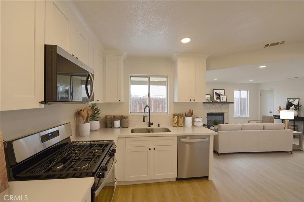 Welcome to 14441 Linden St; a beautifully refreshed home located in a desirable HOA community that combines modern upgrades, functional improvements, and inviting community amenities for comfortable, everyday living. Thoughtfully updated from top to bottom, this move-in-ready property offers buyers peace of mind knowing both cosmetic finishes and key systems have already been addressed. The exterior has been improved with freshly painted fascia, a newly painted front door, a brand-new garage door, updated exterior lighting, a new side fence, and new landscaping. The front and backyard have been cleaned and refreshed with new plants and wood chips, creating a neat, low-maintenance outdoor space. Inside, the home features a bright, modern feel with new baseboards throughout, updated outlets and switches, new doorknobs and hinges, and stylish recessed can lighting in the common areas. New ceiling fans enhance comfort, while a new fire door and a water heater brought up to code add important safety and functional value. The HVAC system has been checked and serviced for optimal performance. Flooring has been fully updated with durable laminate in the common areas, new tile in all bathrooms, and plush new carpet in the bedrooms and upstairs. The kitchen has been completely renovated and shines with recessed lighting, new countertops, a new faucet and garbage disposal, and all-new appliances included. All three bathrooms have been upgraded with new countertops, freshly painted vanities, new faucets, mirrors, lighting, and toilets. Each shower enclosure has been professionally reglazed, delivering a crisp, like-new appearance. The garage has been freshly painted and improved for clean, functional use. As part of a well-maintained HOA community with dues of $95 per month, residents enjoy access to a pool, picnic area, tennis courts, playground, and meeting room adding convenience and lifestyle value. This property offers a turnkey opportunity in Hesperia, blending modern style, thoughtful upgrades, and community living. Don’t miss your chance to own a fully updated home where all the hard work has already been done!