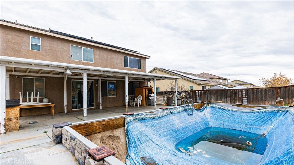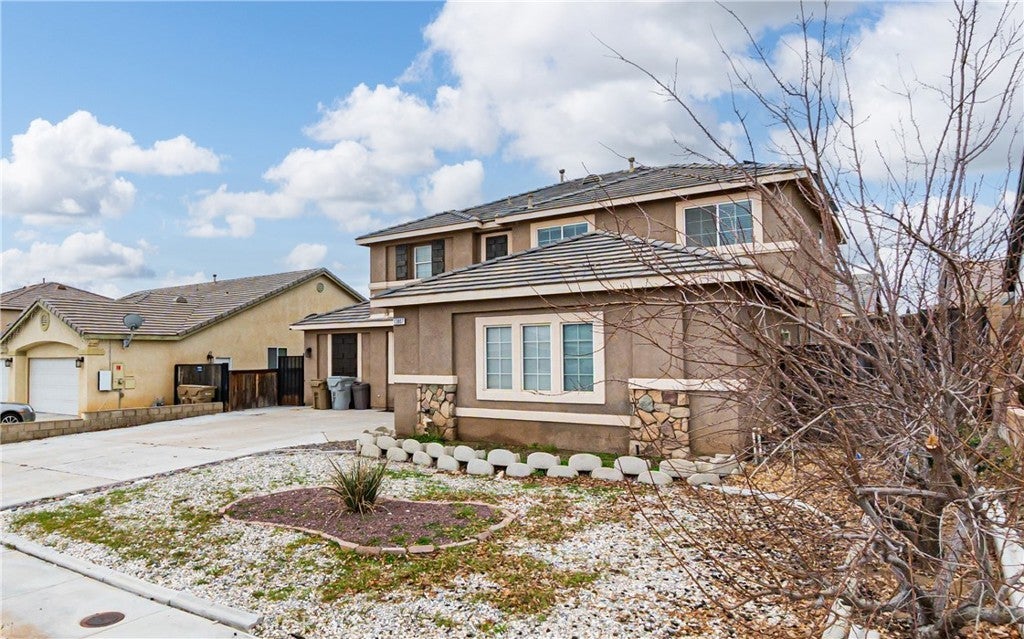 Beautiful 4-Bedroom Home w/ Swimming Pool in Quiet Hesperia Neighborhood! This two-story stunner features an open modern-concept layout w/ upgrades throughout. Formal living room. Theater room w/ movie projector. Kitchen w/ hardwood cabinets, granite countertops, stainless-steel appliances, large walk-in pantry, & center island. Adjacent dining area & family room w/ stone fireplace. One downstairs bedroom/bath. Huge 2nd floor loft area. Spacious Master Bedroom Suite w/ dual vanities, soaking tub, & standing shower. Large private backyard w/ swimming pool & covered patio – perfect for entertaining! Storage shed. Central AC + heat. Fully paid-off solar system. Laundry room w/ storage. 2-car garage w/ plenty of driveway parking. Just a few blocks to local schools & minutes to the best shopping, dining, & entertainment the area has to offer. A unique opportunity that is not to be missed!