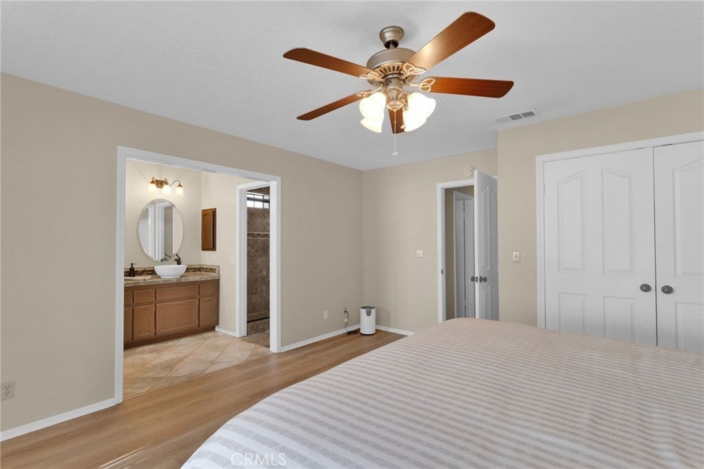 Welcome to your dream home nestled on a peaceful cul-de-sac within the coveted Spring Valley Lake Association community! This beautifully crafted three-bedroom, two-bathroom residence offers 1,804 square feet of thoughtfully designed living space that perfectly balances comfort and style. From the moment you approach, the impressive curb appeal and large covered front patio set the tone for what awaits inside. The heart of this home features an entertaining kitchen with generous dining area, convenient walk-in pantry, and eat-in bar that flows seamlessly into the open living room. Here, a stunning floor-to-ceiling brick fireplace creates a warm focal point, while wood flooring and sliding doors lead to your covered side patio. The versatile front bedroom doubles as an office, complete with a clever converted desk closet for the work-from-home professional. Primary suite serves as a true retreat, boasting a spacious walk-in closet and spa-inspired bathroom with dual vessel sinks, a soaking tub, and custom tiled shower. Laminate flooring throughout, ceiling fans in every room, and inside laundry with built-in storage add practical touches you'll appreciate daily. Step outside to discover a low-maintenance backyard paradise featuring beautiful shrubs, covered patio, and privacy-enhancing block walls with wrought iron fencing. The neighborhood truly shines with access to a private 200-acre lake, fourteen fishing areas, three parks, a golf course, private marina, beach, clubhouse, and around-the-clock patrol. At this price point, this quality-built gem delivers exceptional value.