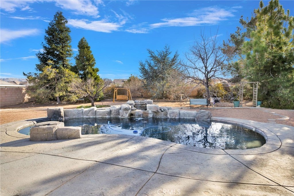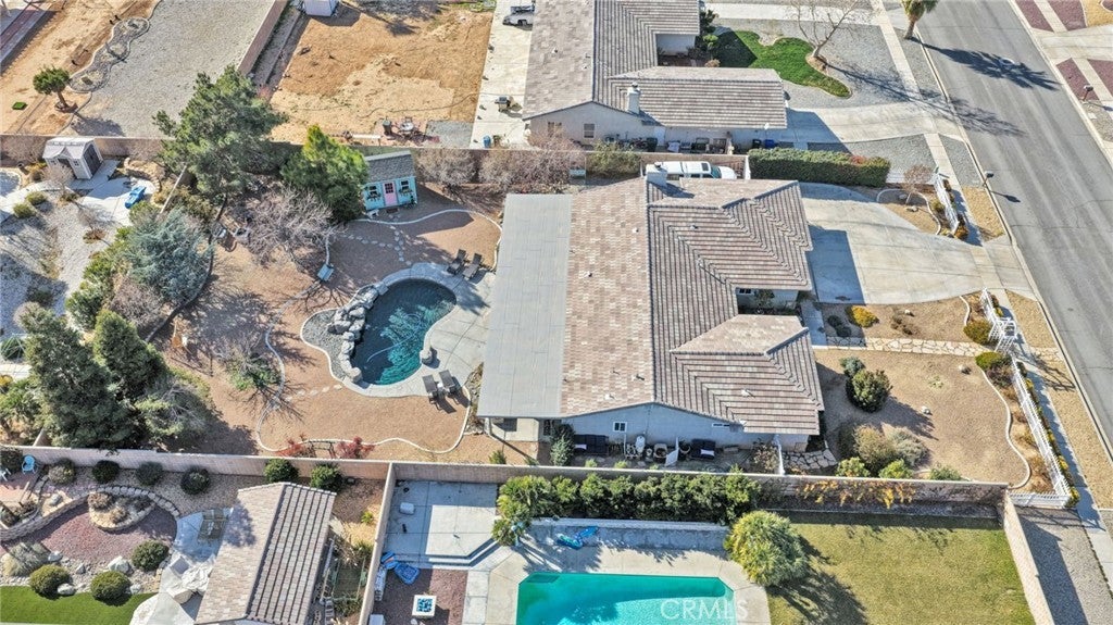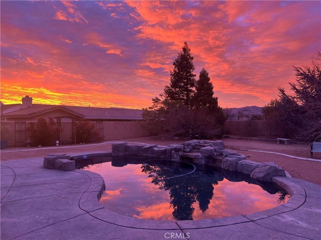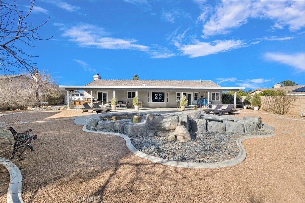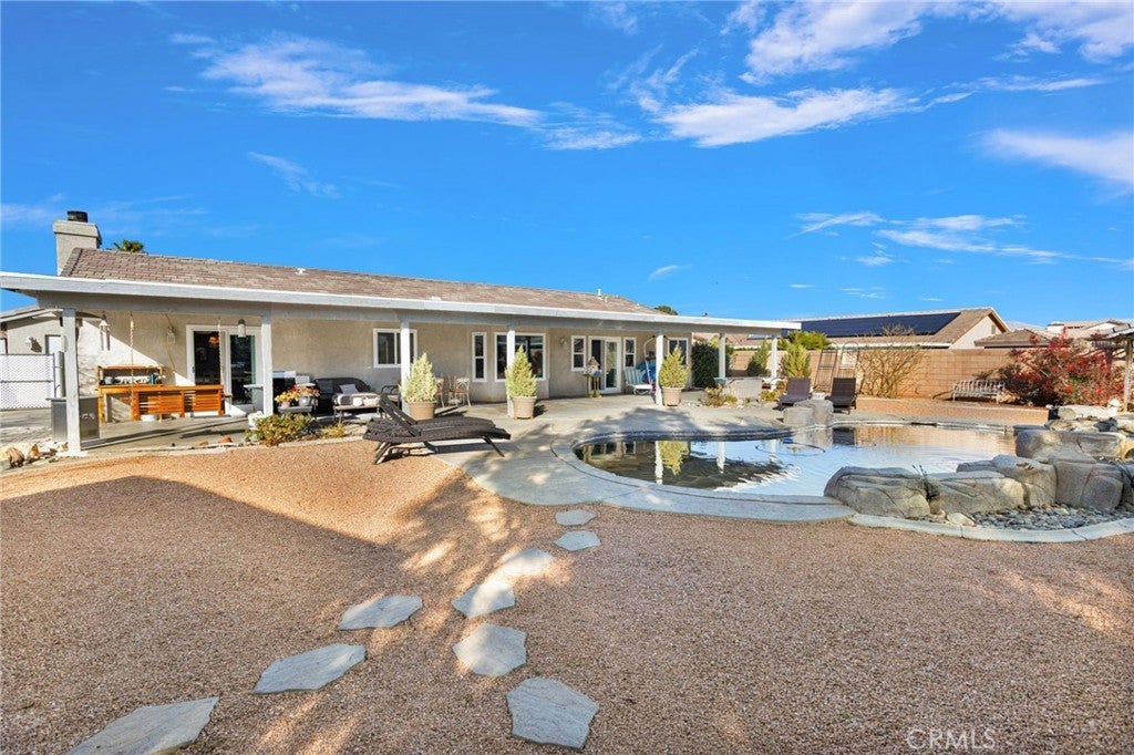 Welcome to this completely UPDATED POOL home in the heart of Apple Valley, where thoughtful design meets everyday comfort. This 3-bedroom, 2-bath home with a versatile bonus space offers flexibility for a 4th bedroom, home office, or gym. Step inside to a formal living and dining area showcasing custom upgrades throughout, including laminate flooring and elegant crown molding. The FULLY UPDATED KITCHEN is a showstopper, featuring gorgeous granite countertops, with breakfast bar, subway tile backsplash, large cast iron sink, walk-in pantry and stainless steel appliances—including a double oven, Five Burner cooktop, microwave, and dishwasher perfect for entertaining and everyday living. The spacious primary suite is a true retreat with a large walk-in closet and an UPDATED ensuite bath offering a CUSTOM walk-in tiled shower, soaking tub, and double-sink vanity with marble countertops. The recently UPDATED guest bathroom features a custom vanity with marble countertops and a beautifully tiled shower/tub combo. Secondary bedrooms are generously sized with great sized closets and the BONUS ROOM adds even more functionality. Home also includes a LARGE INDOOR LAUNDRY ROOM with both gas and electric hookups, tons of cabinets for linens/storage, and a cast iron wash sink. Enjoy OUTDOOR LIVING year-round under the MASSIVE 1,100 sq ft COVERED PATIO with park like backyard, overlooking your CUSTOM BUILT IN POOL AND WATERFALL for SUMMER NIGHTS, with BLOCKWALL for privacy, windblock, debris and secure for animals. The backyard is complete with mature trees on a drip system, DRIVE THROUGH GATE and extensive concrete, ideal for RV or trailer parking. ADDITIONAL HIGHLIGHTS INCLUDE, 3 CAR OVERSIZED GARAGE with heavily insulated barn style garage doors, BRAND NEW WINDOWS, SLIDERS AND PLANTATIONS SHUTTERS THROUGHOUT, CUSTOM DOORS, BRAND NEW WATER HEATER, AND BRAND NEW SHED FOR EXTRA STORAGE/TOOL SHED. DINING AREA HAS BEEN EXPANDED FOR EXTRA SPACE- NOT INCLUDED IN SQ FOOTAGE. Home is situated on a 18,000 sq ft lot, located near New Shopping areas and in the AVUSD.