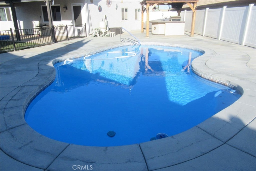 This great home offers three nicely sized bedrooms and two bathrooms, nice size kitchen with granite countertops, plenty of storage. A cozy fireplace in the great room. The living and dining areas feature decorative tile, and the interior has had some recent paint updates. Indoor laundry adds convenience. Outside, enjoy the built-in barbecue with gas hookup under a gazebo, plus an in-ground pool with solar heating blanket as well as separate Solar panels, great for entertaining. The home also has additional solar panels for the house, keeping utility bills low. Ring doorbell with security cameras. Located on a cul-de-sac, the property offers a generously sized yard, a storage shed, and a three-car garage. A must-see home with plenty to offer.