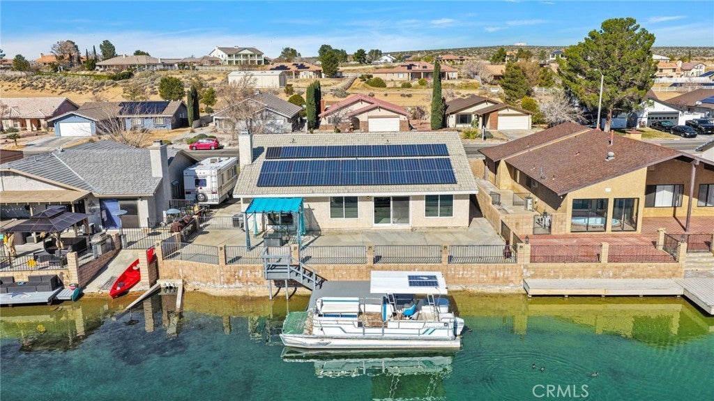 Enjoy **OWNED SOLAR *** that powered the previous owners to net-zero energy usage, plus a Tesla charger in the garage. MOVE-IN READY! This renovated Helendale lakefront home delivers turn-key living with an open-concept great room, huge kitchen with walk-in pantry, spacious bedrooms with walk-in closets, and newly updated baths. Picture this: sunsets from your private dock, Fourth of July fireworks over the lake, and mornings fishing or boating right outside your door. Resort-style community lifestyle: part of the acclaimed Silver Lakes Association, with access to two beautiful lakes, sandy beaches, fishing, boating, kayaking and paddle sports; 27-hole championship golf (three unique 9-hole courses); clubhouse with pool, spa, tennis & pickleball courts, fitness facilities and social events; equestrian center with boarding & trails; and RV/boat storage options. Stable facilities available for horse boarding. A rare opportunity to own lakefront paradise with energy efficiency, upgrades, and Silver Lakes’ unmatched lifestyle . GRAB YOUR QUADS AND DESERT TOYS !! Just minutes from desert recreation.