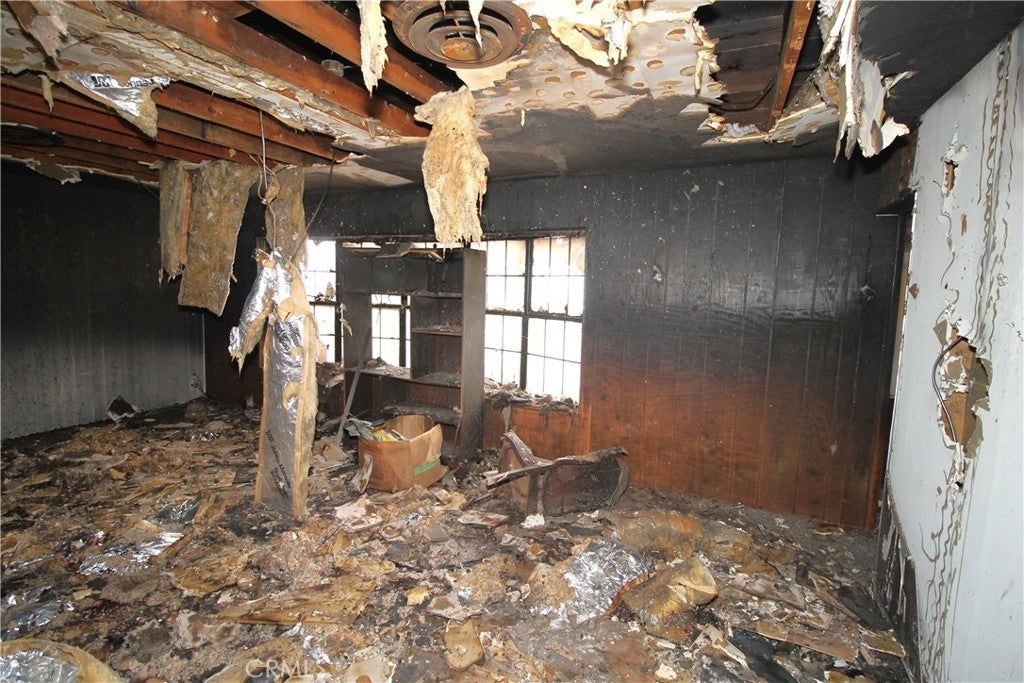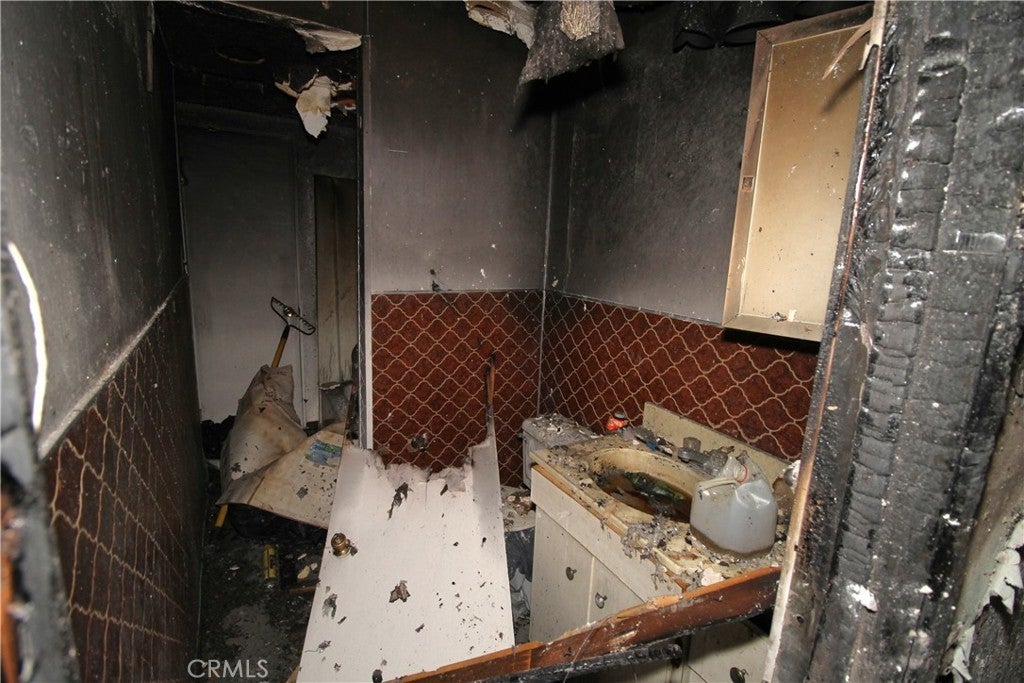 This one had a fire, and there is some debris to be removed. There is a red Tag and you should check with the City on their requirements. This one is not for the inexperienced flipper. This is a 2 Story home and it is important that the buyer verify the information provided. It appears there was 3 downstairs bedrooms and 1 bathroom ground level and 1 on the top level, but not sure.