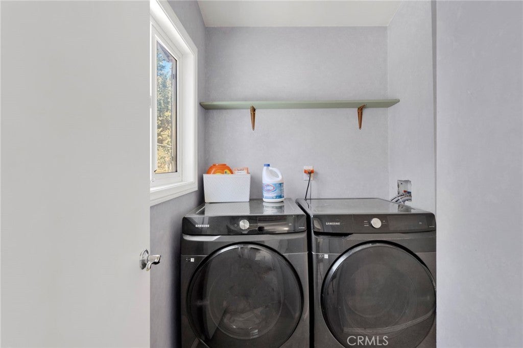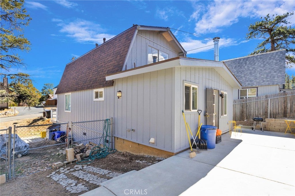 The perfect cabin for your vacation home or full time residence! Fresh interrior and exterrior paint give the home a fresh and clean feel, waiting for you to move in and make it your own! The lot size has been well utilized, with parking spaces in the front the backyard is fully fenced with cement work, retaining wall, grass area and a storage shed. Inside the home you will appreciate the designated living areas with beautiful beamed ceilings throughout the lower level. Plus indoor laundry room and half bath inside. Upstairs are both bedrooms and shared full bathroom. *airbnb* vacation home* big bear lake* big bear mountain* wood burning fireplace* storage shed* landscapaed backyard*