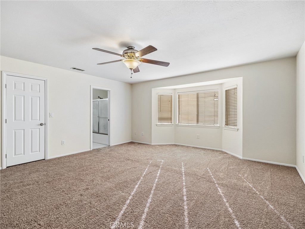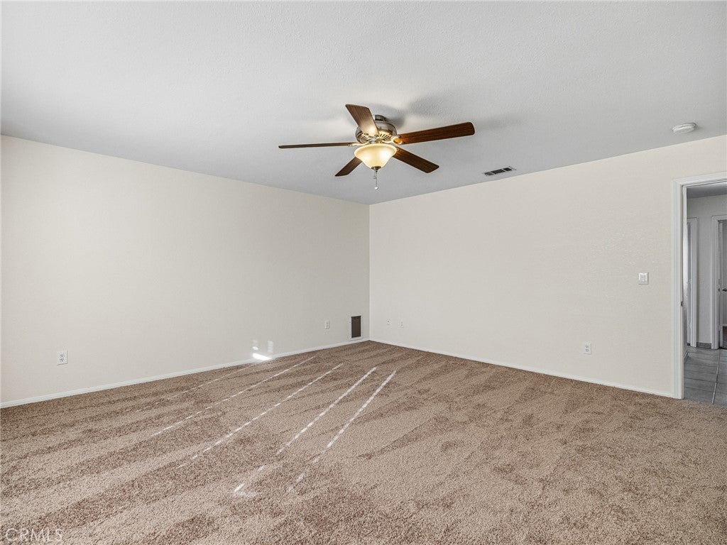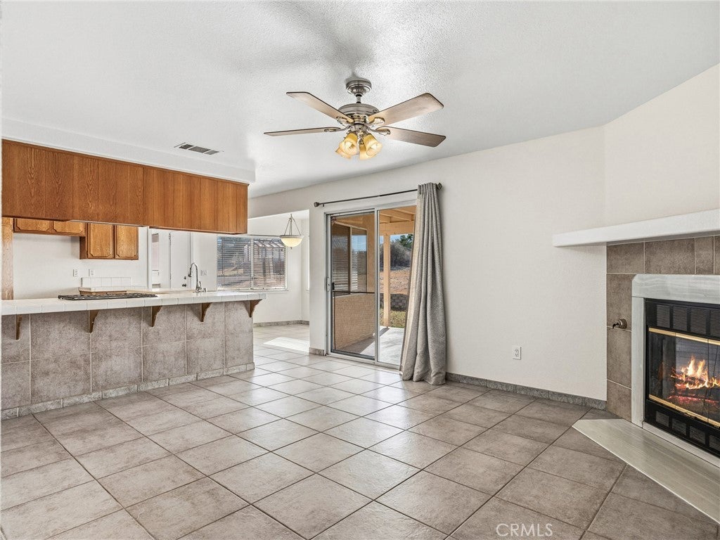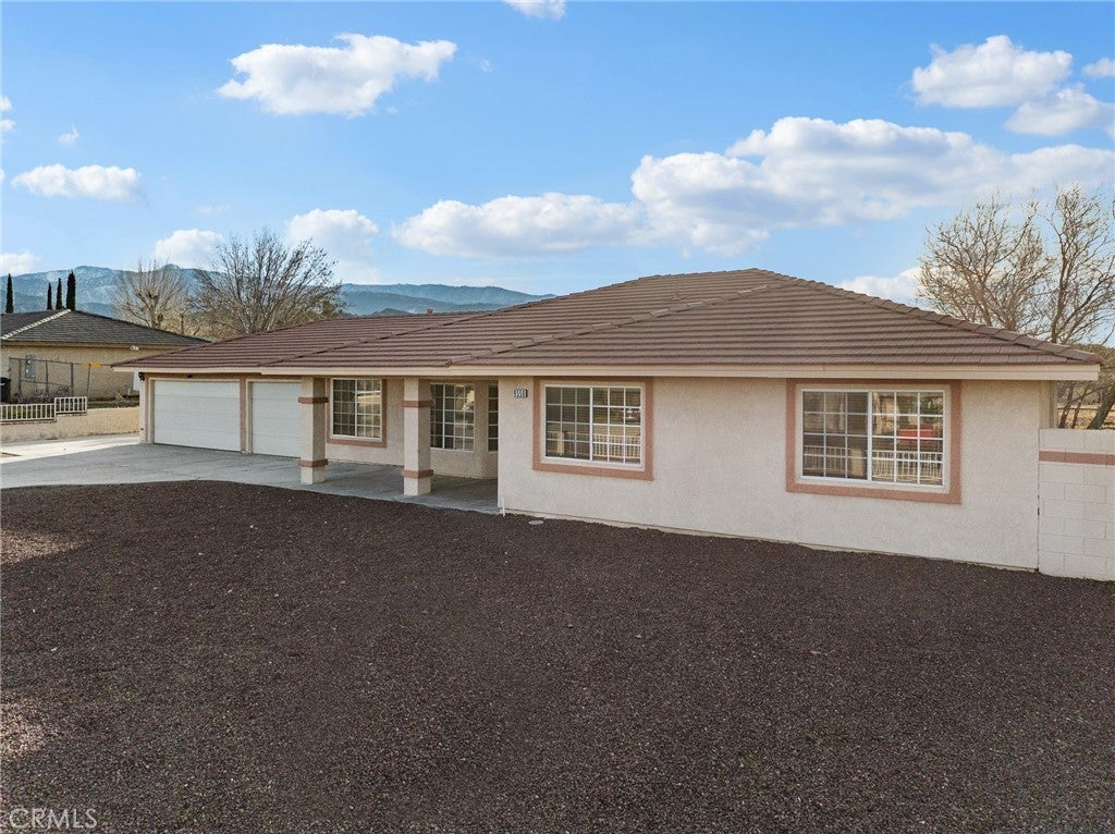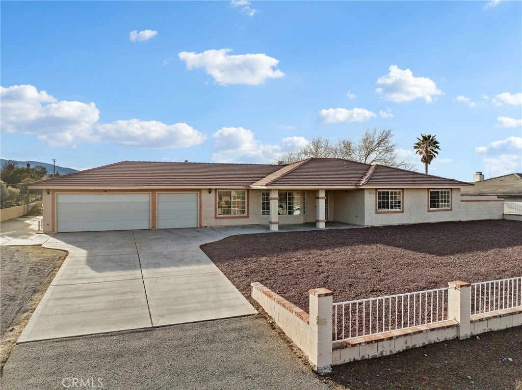 Move in ready 4 bedroom 2 bath home in a clean, quiet community close to downtown and schools! This 1,961 sq ft home has brand new interior paint throughout as well as new carpet. The home welcomes you in with a tiled entry and a large living room and dining area. The family room has a corner gas fireplace and is located just off the kitchen. The kitchen has a newer oven and range and has a peaceful view out to the backyard that can be seen through the windows of the breakfast nook. The laundry space has added storage. The washer/dryer have been moved to the 3 car garage, but could fairly easily be moved back into the dedicated laundry space. Down the hall features all 4 bedrooms with ceiling fans. The primary bedroom has a spacious walk in closet and its own primary bathroom. The covered back patio space has great views of the mountain to the southwest and the open backyard is perfect to create your own backyard oasis. This home is located in a rare, walkable community within Phelan which has paved roads and great proximity to the schools and the new park that is being constructed around the corner from the community.