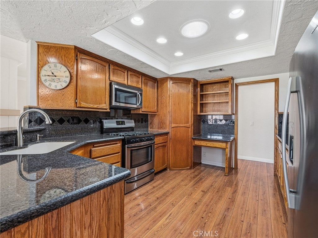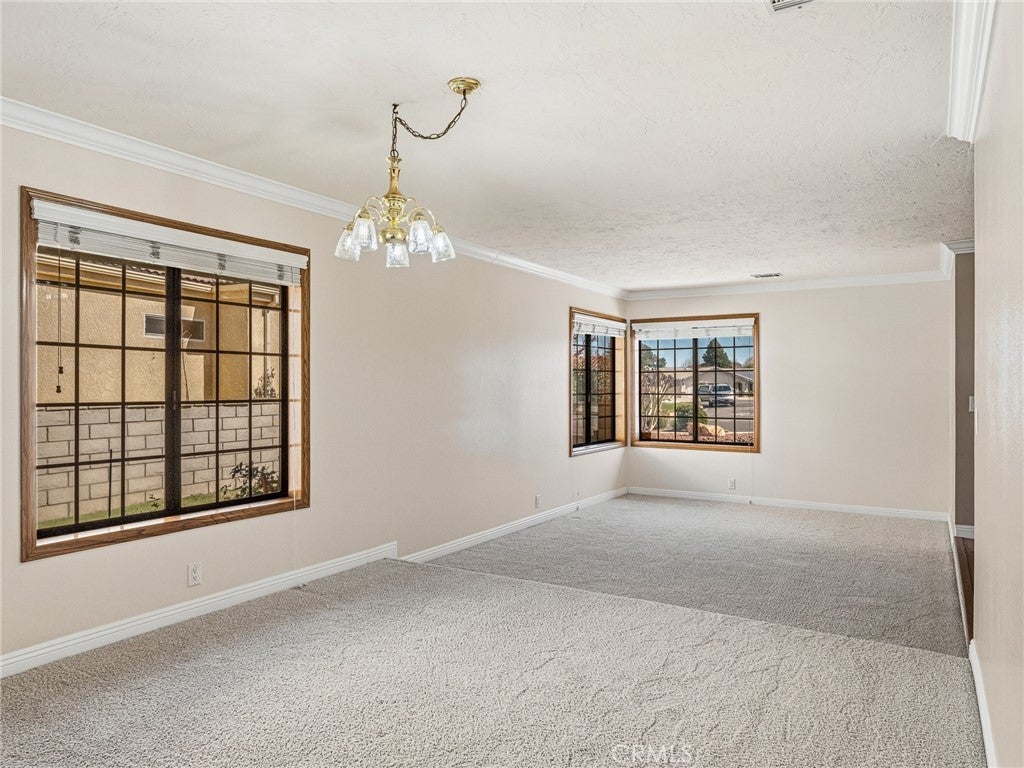 Welcome to this beautifully maintained home located at 12860 Greensboro Road in Spring Valley Lake, where comfort & elegance meet a golfer’s dream lifestyle. Nestled on the Bear Valley Golf Course, this 3-bedroom, 2-bathroom gem offers 2,033 sq ft of living space, perfectly designed to provide both relaxation & entertaining opportunities. As you step inside, the sunken formal living room welcomes you with its inviting ambiance, while the formal dining room offers a sophisticated space for hosting special occasions. Throughout the home, you'll find elegant crown molding, adding a touch of sophistication to every room. The family room, complete with a cozy fireplace & views out every window, is an ideal retreat for any time of year. The kitchen is a chef’s delight, featuring sleek granite countertops, stainless steel appliances, a walk-in pantry, and a skylight that bathes the space in natural light. Enjoy meals in the charming breakfast nook, where you’ll have a front-row seat to the golf course. The primary suite is a true sanctuary, offering double door entry, a cedar-lined walk-in closet, and direct access to the backyard, where you can unwind on the covered patio. The en-suite bath boasts granite counter tops, double sinks & a walk-in tile shower, adding a touch of luxury to your daily routine. For added convenience, the home features an indoor laundry room with ample storage cabinets, a sink, & a built-in desk area—ideal for keeping things organized & out of sight. This home also offers an attached 2-car garage, complete with an automatic opener, built-in cabinets, & a workbench, making it the perfect space for storage & projects. Plus, the home has a new water heater, ensuring peace of mind for years to come. With a spacious lot, a beautifully landscaped backyard with lush grass, & a low-maintenance front yard, this home is perfect for outdoor living. Relax on the covered patio while enjoying peaceful sunsets & scenic golf course views. Residents of Spring Valley Lake enjoy incredible amenities including a 200-acre private lake for boating, fishing, & swimming, a beach area, parks, & a vibrant community center. For golf & recreation enthusiasts, join the Bear Valley Country Club that offers a Robert Trent Jones-designed 18-hole golf course along with tennis, pickleball, racquetball, a fitness center, Olympic-sized pool, jacuzzi, & sauna. Don’t miss the opportunity to own a beautiful golf course home in the sought-after Spring Valley Lake community.
