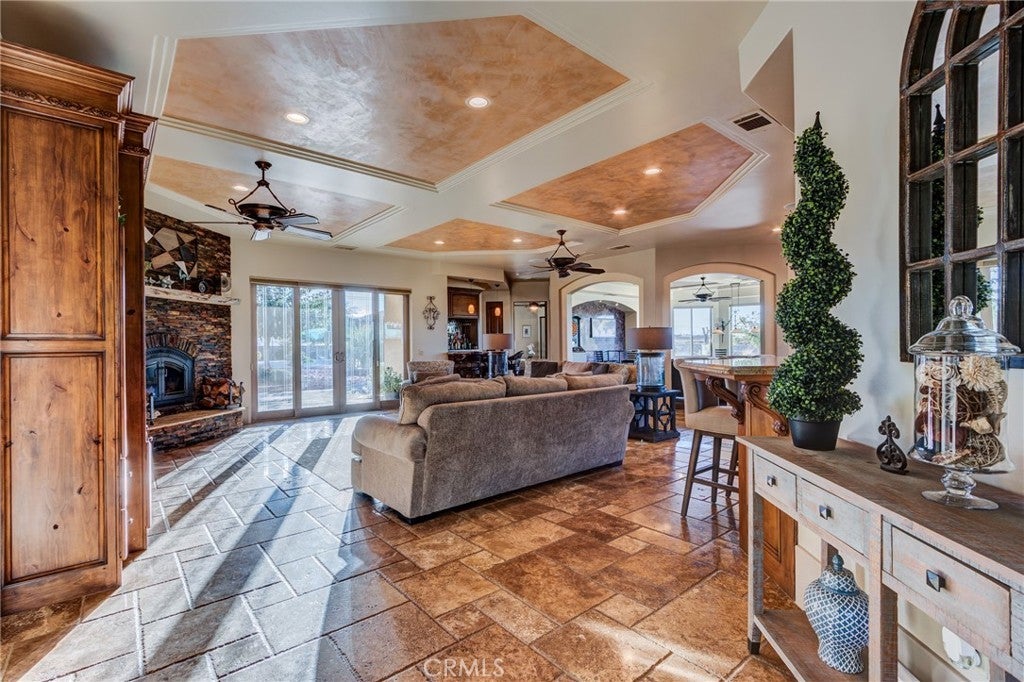 ***Have you been waiting for a house that has the WOW FACTOR? Here it is! This Truly ONE-OF-A-KIND ESTATE Style Home in East Oak Hills has it all!! This Stunning TUSCAN-STYLE Estate is located on a CUL-DE-SAC in one of the most DESIRABLE AREAS, featuring PAVED STREETS, natural gas, mature landscaping, and a BLOCK WALL that surrounds the ENTIRE PROPERTY***Impressive curb appeal with real rock veneer, heavy crown cornice, custom corbels, paver driveway and walkways, stamped and colored concrete, wrought iron gates, and a GRAND steel double-door entry**Looking for GARAGE SPACE?? Car lovers and hobbyists will appreciate the attached OVERSIZED 4 CAR GARAGE, PLUS a massive 2,500 sq ft DETACHED STUCCO GARAGE with RV-height access/doors that PULL THROUGH to the backyard & RV CARPORT**The RESORT-STYLE backyard is built for entertaining, featuring a GROTTO POOL with WATERSLIDE, SPA/JACUZZI, along with a BUILT-IN OUTDOOR BBQ area* Covered PATIO with TVs**Inside you'll find LUXURY FINISHES throughout, including travertine flooring, travertine showers, marble accents, double bullnose granite, knotty pine doors and cabinets, VENETIAN ACRYLIC CEILINGS, and real wood wainscoting*The upgrades are endless***The home also features a chef’s kitchen with BUILT-IN appliances and ISLAND, WET BAR & GAME ROOM, two offices with CUSTOM BUILT-INS, stacked stone fireplace with wood-burning stove, and gas fireplaces in the dining room and primary suite**Beautiful picture windows from nearly every angle of the home allow natural light to pour in while showcasing the stunning landscaping and outdoor living areas**The primary suite is a true retreat with a sitting area (ideal nursery/gym), jacuzzi tub, walk-in shower, dual vanities, and a huge walk-in closet with MORE BUILT-IN cabinets/dressers** A RARE East Oak Hills estate offering LUXURY, SPACE, and incredible entertaining amenities — all within just a few SHORT MINUTES from the 15 FREEWAY. This one is TRULY A MUST SEE!