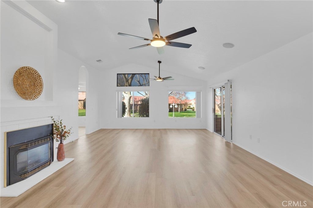 Welcome to the highly desirable 55+ community of Jess Ranch, where comfort, convenience, and an active lifestyle come together. This charming 2 bedroom, 2 bath home sits on a larger corner lot backing to a beautifully maintained grassy greenbelt, offering a peaceful setting perfect for morning walks, visiting with neighbors, or simply relaxing and enjoying the day. The home features three private patios, creating wonderful outdoor living spaces throughout the property. Enjoy a quiet morning coffee from the patio off the front bedroom, unwind on the private patio off the spacious primary suite, or entertain guests from the patio accessed through the living and dining area. Inside, the home offers fresh new paint and new flooring, creating a bright and welcoming atmosphere. The open living and dining room features built-in cabinetry, a cozy fireplace, large windows, and a sliding glass door, filling the space with natural light and enhancing the indoor-outdoor flow. The kitchen provides ample counter space, a large pantry, and a comfortable kitchen nook perfect for a small dinette or casual meals. Throughout the home you’ll find generous storage options, along with additional storage in the attached garage. Jess Ranch is a private, well-maintained community known for its welcoming atmosphere and variety of activities and amenities for residents. Conveniently located near shopping, dining, and everyday conveniences, this home offers the perfect blend of privacy, community, and low-maintenance living. Come experience the relaxed lifestyle Jess Ranch has to offer.