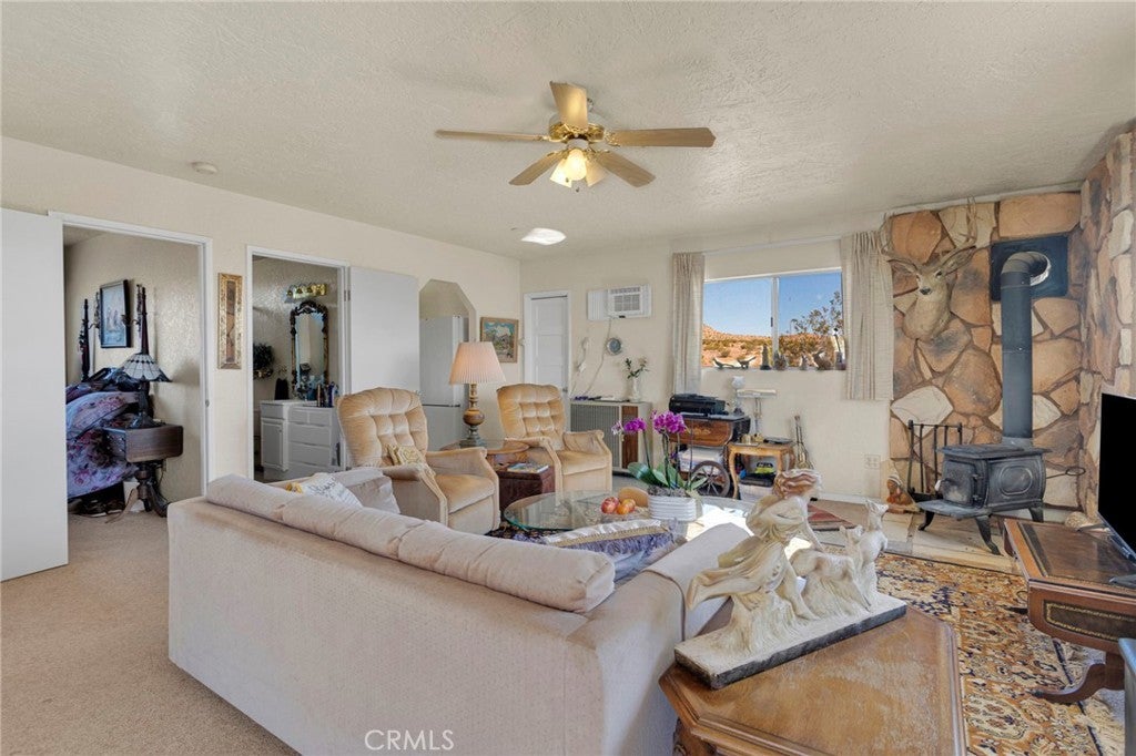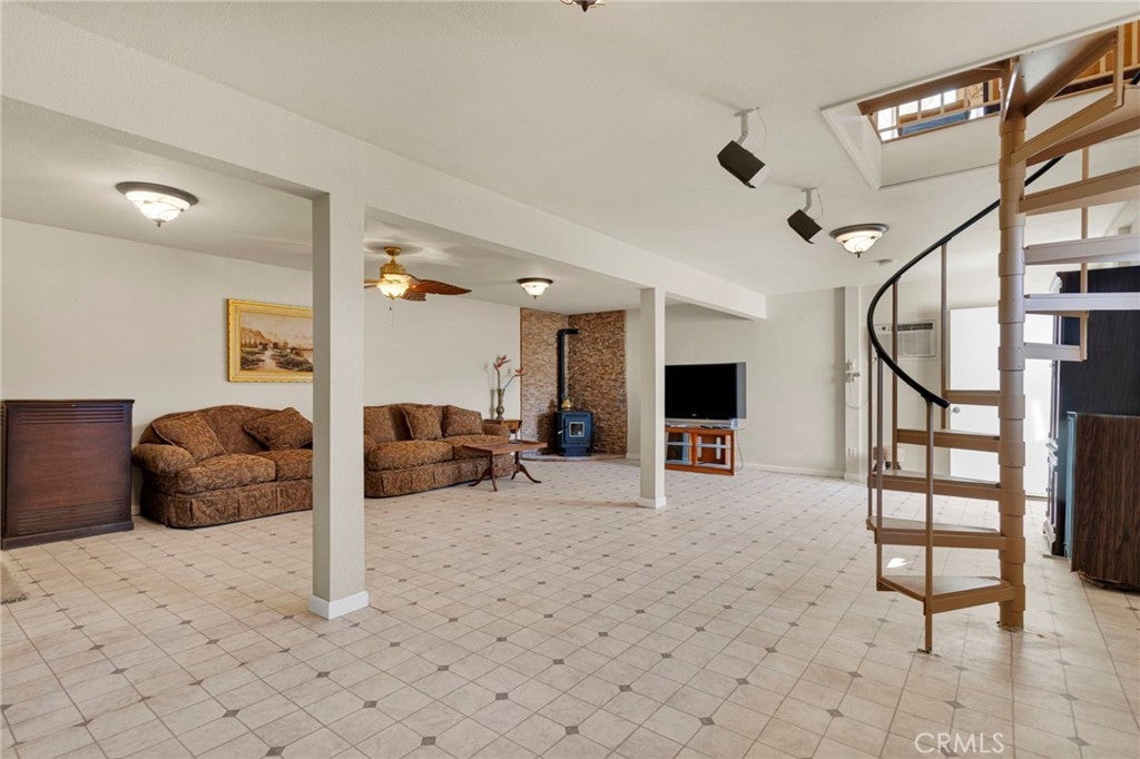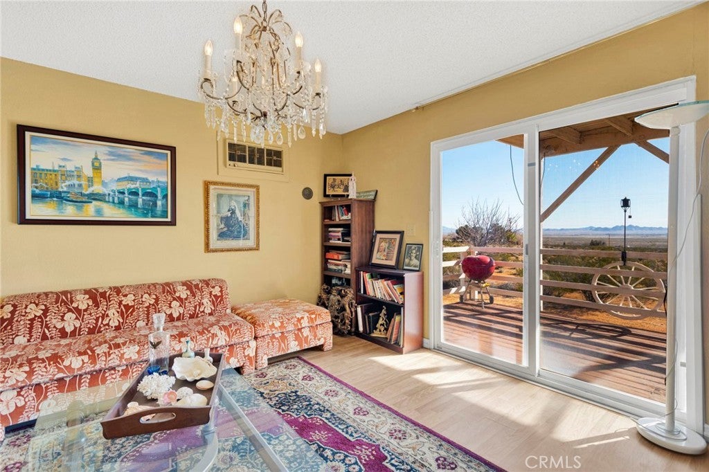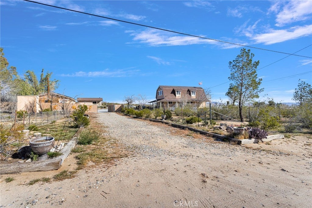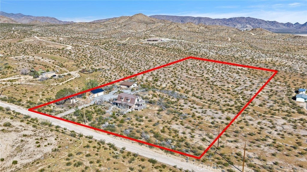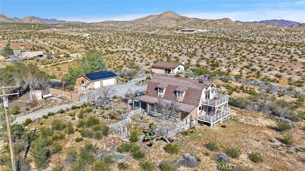 This property has two homes on 5 acres with a three-car detached garage. Offering stunning desert views and incredible flexibility for multi-generational living, rental income, or a peaceful private retreat. The main residence is a spacious three-story home offering approximately 3,024 square feet with a fully finished basement. The home includes 4 bedrooms, 2 bathrooms, a bonus room, a living room, and a family room, creating a flexible layout for a variety of living arrangements. The main level features a full bathroom, laundry room, and a handicap-accessible ramp for added accessibility and convenience. Downstairs, the finished basement offers additional character with a built-in china and wine cabinet and a Hammond organ. The versatile floor plan allows the lower-level room to function as a primary bedroom, formal dining room, entertainment space, or potential rental area, depending on your needs. The home is topped with a durable Alcoa aluminum shingle roof designed for lifetime performance and styled to resemble tile. Outdoor living spaces include two covered decks and one open deck, perfect for enjoying the peaceful surroundings and breathtaking desert views. The property also features a separate 760-square-foot single-story guest home built in 2000. This charming second residence includes 1 bedroom, 1 bathroom, a family room, a breakfast nook, and a full kitchen. The home features a cozy wood-burning stove, is wired for cable and WiFi, and includes an interior sprinkler system for added safety. The guest home can come fully furnished if desired. The property includes a solar energy system with 25 panels wired to the main house with a very low monthly lease of $141, which is assumable. Both homes operate independently with their own septic systems, propane tanks, and electric meters while sharing water, supplied by a private well. Approximately 2.5 acres of the property are fenced, offering space for animals, outdoor projects, or additional privacy. Conveniently located just 0.2 miles from a paved road, approximately 25 minutes from Big Bear Lake, and 15 minutes from the Apple Valley shopping centers, this property offers the perfect balance of rural living with nearby amenities. This one will not last long. Schedule your private tour.