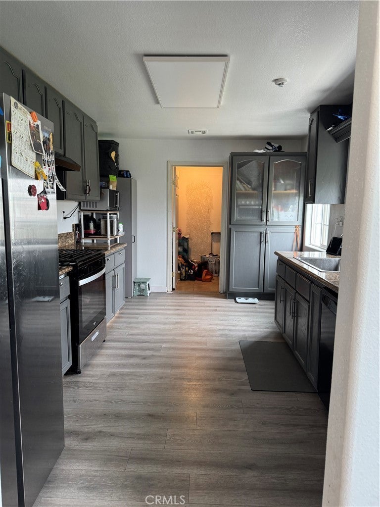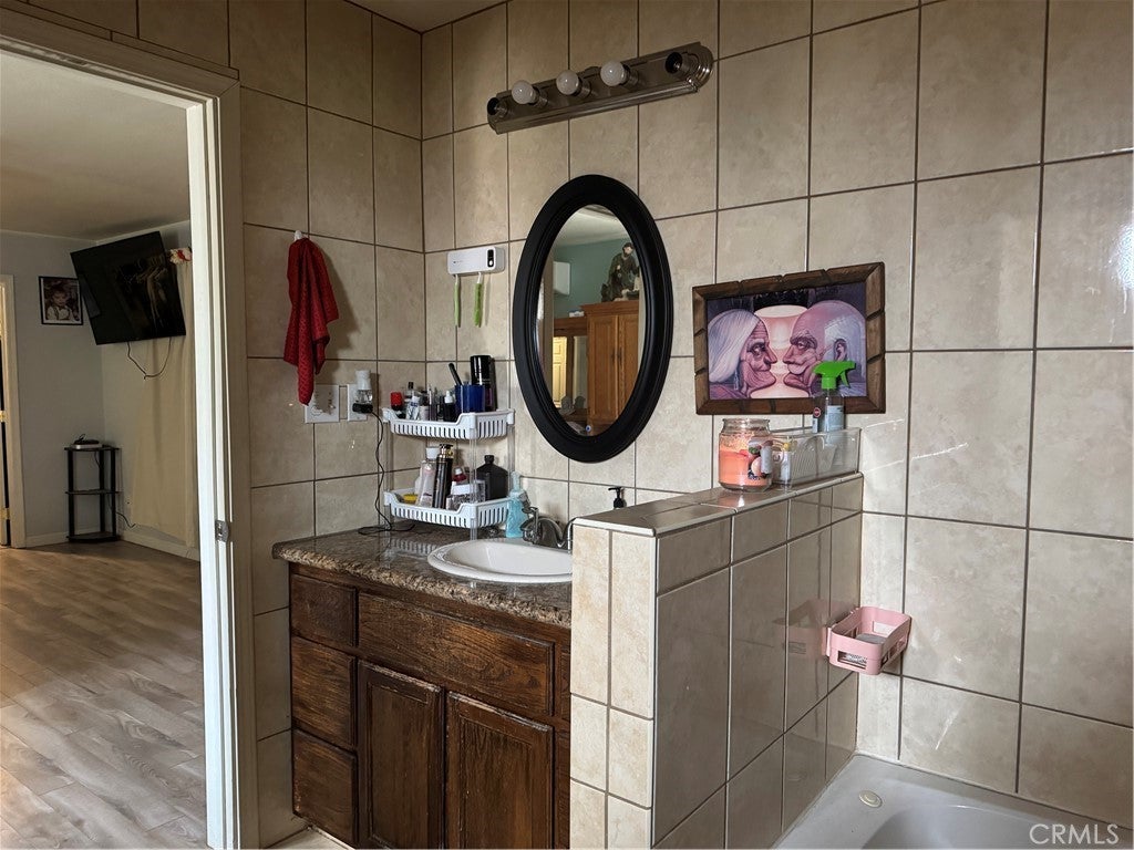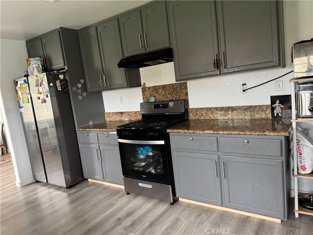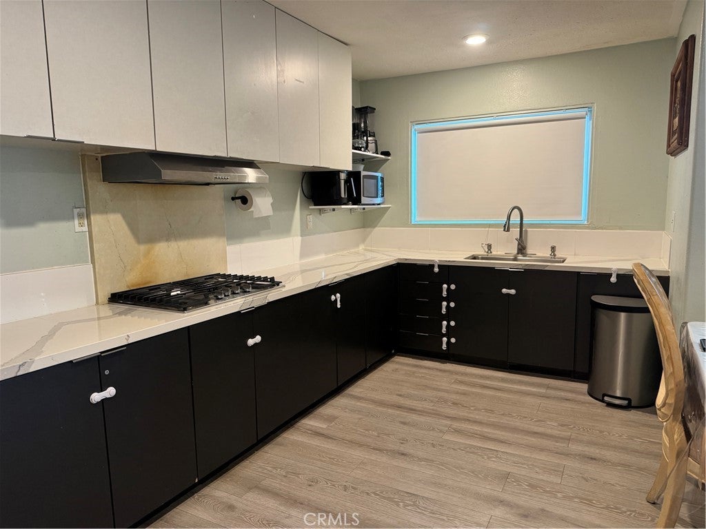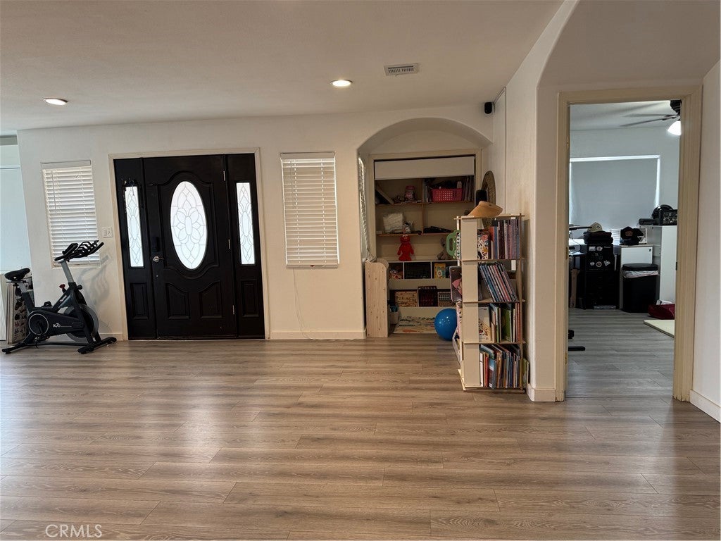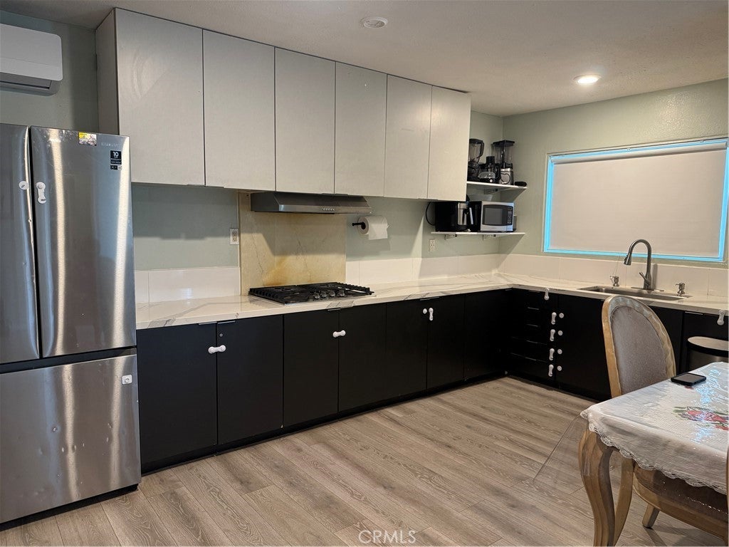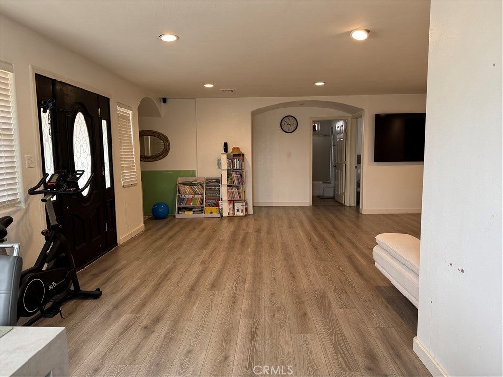 very unique home ,Front part is two bedrooms ,full bath,living and dining area,kitchen with plenty of cabinets ,laundry room in between is a play area or can be a storage space Back of the house with side entrance count with huge master bedroom with his and hers separate closet, very nice Bath with Jacuzzi tub, Sauna space and separate shower ,beautiful vanity ,small cute bedroom, half bath , open concept Kitchen, dining and living areas with own exit to the garage where the laundry is located ,plus another area beside the garage for the extra items total the house have 2 kitchen,3 bedroom, plus one bonus small room can be the 4 bed,2 living and dining as now is two families living there with no interfere with each other Corner lot ,plenty of yard ,Block fence and electric gate and much more !!!!