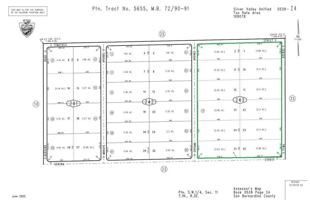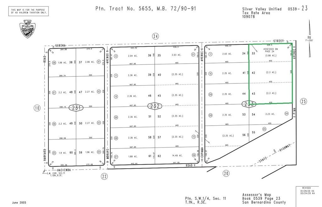Prime 32.5+ Acre Development Opportunity – Newberry Springs Unlock the potential of this expansive 32.95-acre property strategically located along the Southbound Interstate 15. With over 50,000 average daily traffic passing by, this site offers unparalleled exposure for commercial or specialized residential use. Key Property Highlights • Size & Layout: Approximately 32.9584 acres, already subdivided into 15 individual lots. • Zoning: Zoned as Rural Living (RL), providing a flexible foundation for various projects. • Location: Situated at approximately 39501 Cuyama Ave, Newberry Springs, CA 92365 near the corner of Cuyama St and Serena St. • Topography: Features a level, rectangular lot with stunning valley views. Development Potential The property’s unique positioning and size make it an ideal candidate for: • Commercial Ventures: Motel, hotel, or a truck stop extension. • Infrastructure & Tech: EV charging stations, cellular towers, or electronic billboards. • Residential/Agri: A large ranch estate or a mobile home setup with room for cattle and livestock. Utilities & Infrastructure • Electricity: Available on Hacienda Dr. • Water/Sewer: Property will require a water well and septic system. • Access: Direct access with high visibility from the I-15 freeway.