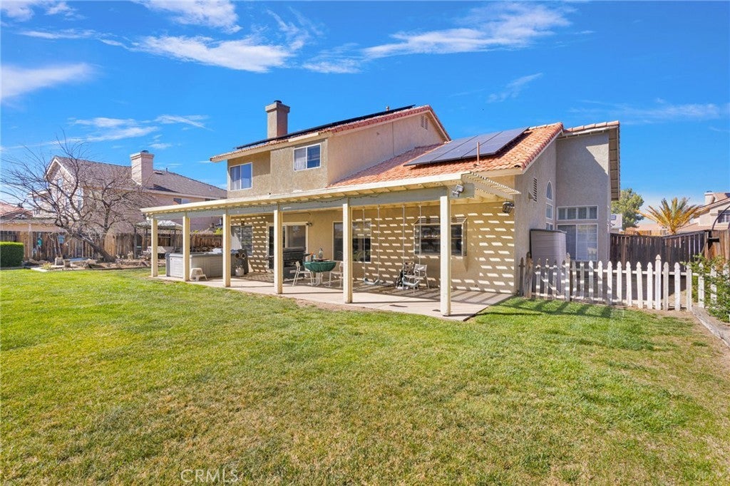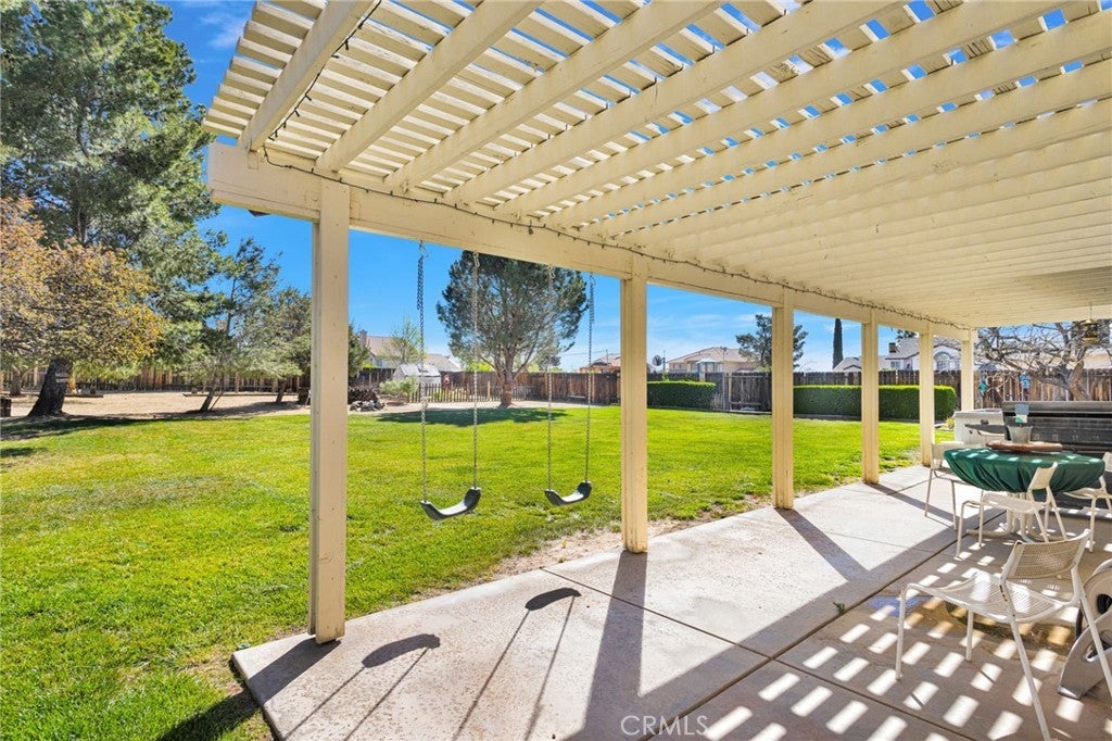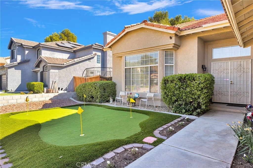 Welcome to this spacious 5-bedroom, 3-bathroom home located in the desirable Sterling Valley Ranch community of Apple Valley. Offering a perfect blend of comfort, functionality, and outdoor enjoyment, this property is designed for both everyday living and entertaining. Step inside to a thoughtfully designed layout with generous living spaces, abundant natural light, and a seamless flow throughout. The well-appointed kitchen provides ample cabinetry and workspace, perfect for gatherings and daily living. This home features five spacious bedrooms, offering flexibility for a growing household, guests, or a home office. The primary suite serves as a relaxing retreat with an en-suite bathroom and plenty of closet space. Energy efficiency is a standout with two solar systems, including one newer system that is fully paid off, along with a new solar battery (paid in full) for added savings and reliability. An additional existing solar system is currently on a lease. Step outside to your own private backyard retreat—lush, green, and filled with mature trees. Enjoy a variety of outdoor amenities including a greenhouse, 2 fire pits, horseshoe pit, pitching mound, and putting green, creating the perfect space for relaxation and recreation. The property is also ideal for pet lovers, featuring dog doors and a dedicated dog run. Security and convenience are thoughtfully included with a Ring doorbell and two cameras, motion lighting in the side yard, security sensor lights, and a security screen front door.