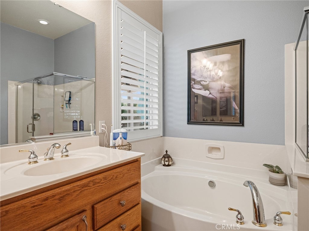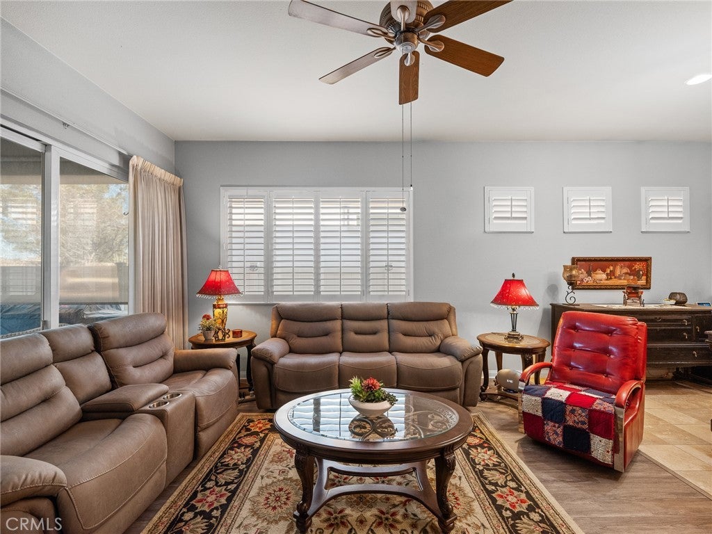 Welcome to resort-style living in the highly desirable 55+ Del Webb Solera community in Apple Valley! This beautifully maintained home offers the perfect blend of comfort, elegance, and active adult living. Featuring 2 spacious bedrooms plus a versatile office/den, and 2 bathrooms, this thoughtfully designed layout includes a primary suite with a separate bathtub and shower in bathroom, with a secondary en-suite—ideal for guests or multi-generational living, this bathroom has a beautifully remolded shower. Soaring 10-foot ceilings throughout create an open, airy feel, while the stunning stone exterior adds exceptional curb appeal. The heart of the home is the inviting kitchen, complete with elegant Corian countertops paired with stunning backsplash, a convenient breakfast bar, and stainless-steel appliances—perfect for everyday living and entertaining, let's not forget the water purification filter system in kitchen. The cozy living room features a charming fireplace, creating a warm and welcoming space to relax. Beautiful Plantation shutters throughout home and solar that new owner will assume that covers the electric bill. Step outside to a beautifully landscaped backyard with a covered patio—ideal for enjoying peaceful mornings or evening gatherings. Living in Del Webb Solera means enjoying a true resort lifestyle with incredible amenities including a sparkling pool, clubhouse, pickleball courts, golf course, and a full calendar of social activities and events. Don’t miss this opportunity to enjoy low-maintenance living in one of Apple Valley’s most sought-after active adult communities!
