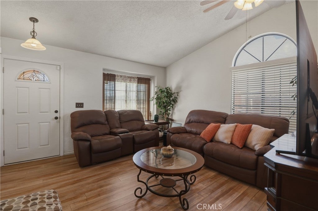 Beautiful single-story home featuring 2 bedrooms and 2 full baths with vaulted ceilings and a bright, open layout. The interior offers durable laminate and tile flooring throughout, providing both style and easy maintenance. A spacious front yard adds great curb appeal, while the backyard patio creates an inviting space for relaxing or entertaining. This well-maintained home shows true pride of ownership and is being sold in its present 'as-is' condition. Conveniently located near Bear Valley Mall, restaurants, and offers quick access to the I-15 for an easy commute.