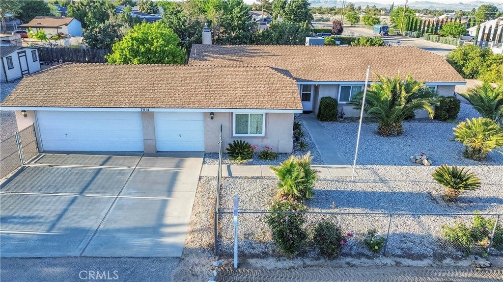 More Bedrooms, More Garage, More Value — A Rare Find in Hesperia home located in an established neighborhood, offering comfort, functionality, and valuable upgrades throughout. Built in 1995, this single-story home features approximately 1,512 square feet of living space and sits on a generous lot with room to enjoy both indoor and outdoor living. One of the standout features of this property is the oversized 3-car garage, complete with a Laundry area and bonus area that can be used for a storage, a workshop, or hobby space—perfect for those needing extra flexibility. Inside, the home offers a practical floor plan with a comfortable living area enhanced by a pellet fireplace insert, providing efficient and cozy heating during cooler months. The home has been improved with energy-conscious features including extra insulation and a whole house fan and dual pain windows throughout helping maintain interior comfort year-round. The roof was replaced in 2015, offering added peace of mind for future homeowners. The kitchen and dining areas flow well for everyday living, and several items will remain with the property, including the refrigerator, microwave, and dining room table—making this a great opportunity for a move-in-ready transition. Outside, the property includes a shed for additional storage and is serviced by a septic system. The lot provides space and potential for customization, gardening, or outdoor enjoyment. Conveniently located near local amenities, schools, and commuter routes, this home combines practical features with long-term value. Whether you're looking for additional space, a well-maintained property, or a home with useful upgrades already in place, this is a great opportunity to own in the High Desert.
