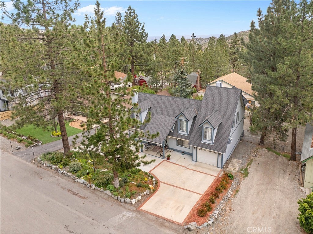 Nestled in the scenic San Gabriel Mountains, this exceptional home offers a rare blend of peaceful mountain living and welcoming small-town charm. Enjoy an easy drive home—free of winding switchbacks—where neighbors greet you with a friendly wave and community spirit thrives. Local conveniences include charming churches, a neighborhood market, post office, library, and a helpful, community-focused hardware store. Situated on sought-after Chaumont Drive, this meticulously maintained residence features approximately 2,216 square feet of thoughtfully updated living space. Inside, you’ll find carefully curated finishes, an inviting living room anchored by a beautiful brick fireplace with gas logs and a glass enclosure, and an open-beam wood ceiling that adds warmth and character. A striking wall of illuminated glass bookcases with a built-in faux fireplace creates a cozy and elegant focal point. The private upstairs suite comfortably accommodates 1–4 guests, making it perfect for extended family or visitors. Additional highlights include central heating and air conditioning, a full-home fire sprinkler system for added peace of mind, and instant hot water in the kitchen. Outdoors, the property is enhanced by extensive lighting and includes two large storage buildings, both set on permanent foundations. Come, visit and be charmed.