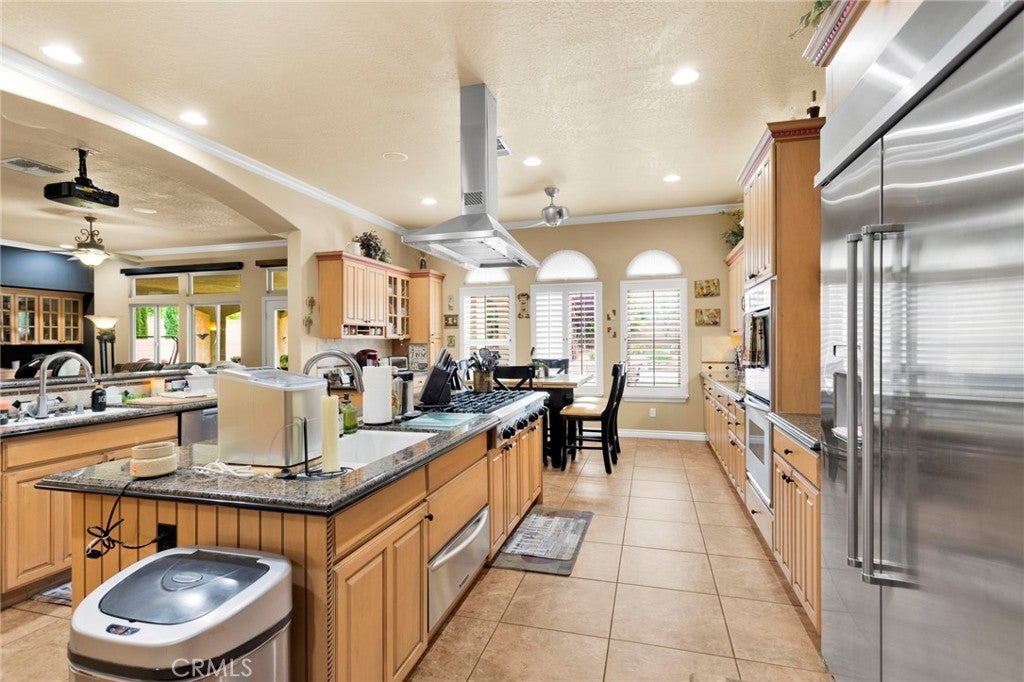 • AppliancesSixBurnerStove, Double Oven, Dishwasher, Electric Oven, Disposal, Hot Water Circulator, Ice Maker, Microwave, Refrigerator, Vented Exhaust Fan, Warming Drawer