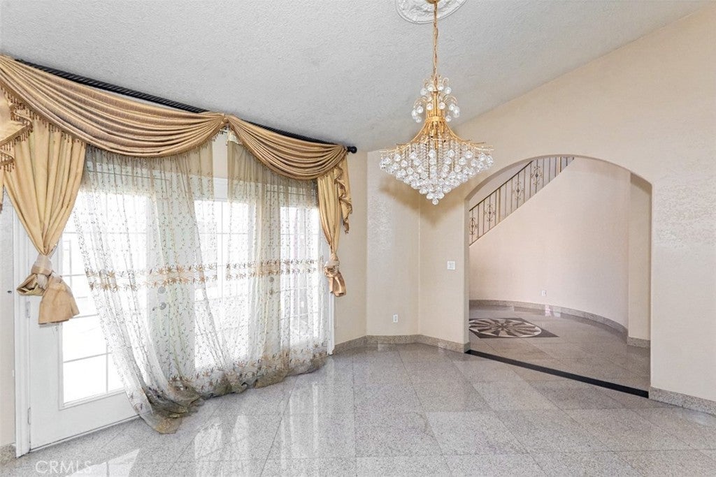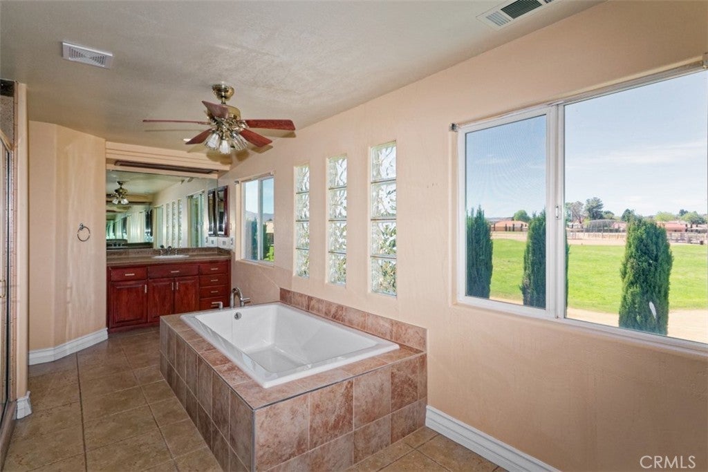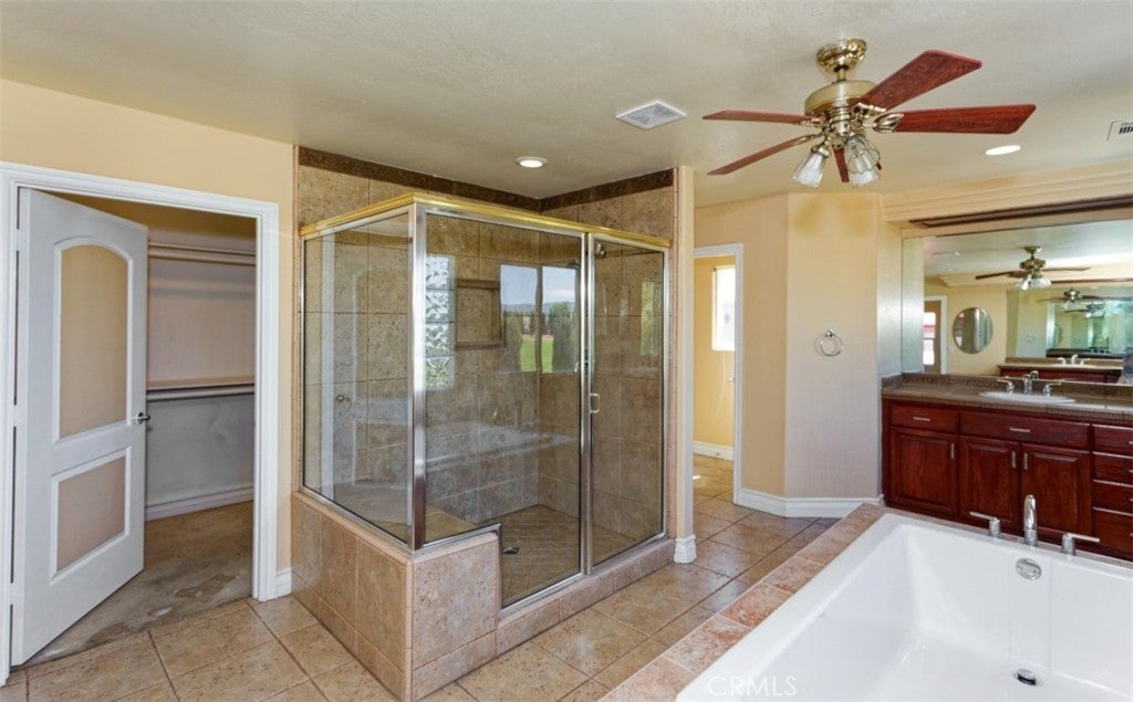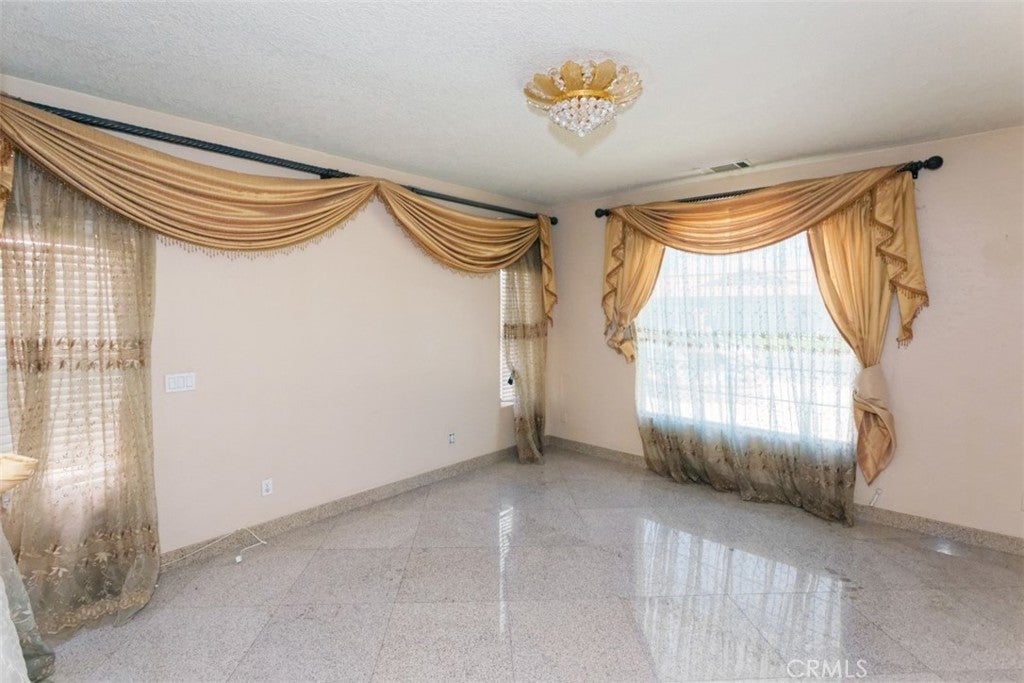 Vacation Where You Live in Spring Valley Lake! In a stunning 3,671 sq. ft. two-story home located in the highly sought-after Spring Valley Lake community, offering lake access, golf, parks, fishing, and vibrant club activities. This impressive residence features a desirable main-floor bedroom and full bath, along with a grand foyer, formal living room, formal dining area, and a convenient lunch nook adjacent to a beautifully designed kitchen complete with a center island. The spacious family room flows seamlessly to the backyard, creating the perfect indoor-outdoor living experience. Step outside to your private retreat featuring an inground pool and spa, privacy block walls, and side walkways for easy access. The front of the home welcomes you with a solid concrete courtyard, decorative water fountain, and gated entry for added charm and security. Upstairs, enjoy a large entertainment great room with hookups for a beverage fridge and abundant cabinetry—perfect for hosting. The primary ensuite offers a true retreat with a glass-enclosed shower, separate soaking tub, dual vanities on opposing sides, ample closet space, and a private commode room. Additional highlights include ceiling fans, elegant chandeliers, a tile roof, unique architectural design elements, and a striking spiral staircase with granite treads and wrought iron detailing. The low-maintenance landscaping is ideal for an on-the-go lifestyle. Relax, entertain, and live the lifestyle you’ve been dreaming of—this is more than a home, it’s a statement.