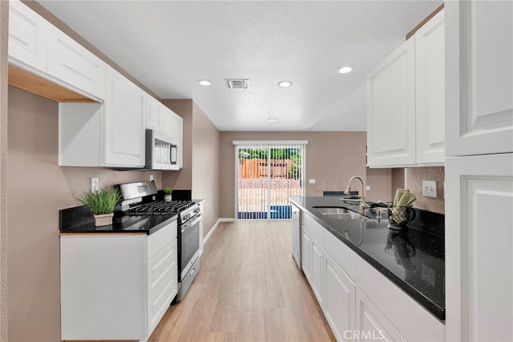 Step into this stunning single story 4-bedroom, 2-bath home featuring a spacious open floorplan and a sleek, contemporary design throughout. The fully refurbished interior and exterior shine with brand-new details — from elegant new flooring and baseboards to fresh finishes that make every space feel like new. The modern kitchen is a showpiece, boasting brand-new stainless steel appliances and striking black quartz countertops that extend into both the kitchen and baths. Perfect for entertaining or everyday living, the open layout connects the living, dining, and kitchen areas seamlessly. Enjoy the convenience of a large 3-car garage, offering plenty of space for vehicles, storage, or hobbies. Every inch of this home has been thoughtfully updated to deliver style, comfort, and functionality in one impressive package.