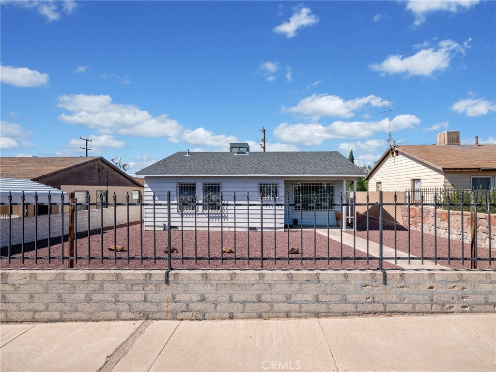 Welcome to this beautifully maintained 2-bedroom, 1-bathroom home nestled in the heart of Barstow. From the moment you arrive, you’ll appreciate the low-maintenance rock landscaping in the front yard, offering both curb appeal and water efficiency. The property is fully enclosed with a combination of brick wall, privacy chain link, and wrought iron gates—providing both security and style. Step inside to discover an exceptionally clean and well-cared-for interior. This home truly shines with pride of ownership throughout. Major upgrades have already been taken care of, including a newer roof, newer A/C unit, an evaporative cooler for added efficiency, a brand-new garage door, and a new water heater—giving you peace of mind for years to come. Every detail reflects cleanliness and care—this home is truly move-in ready. With just a little personal upgrading, this property has incredible potential to become the perfect starter home or investment opportunity. Don’t miss your chance to own a solid, well-maintained home with great bones and endless possibilities!