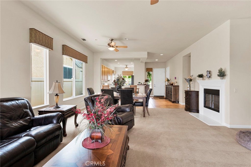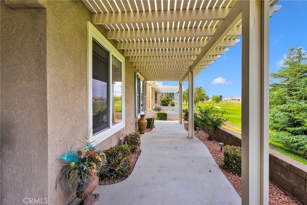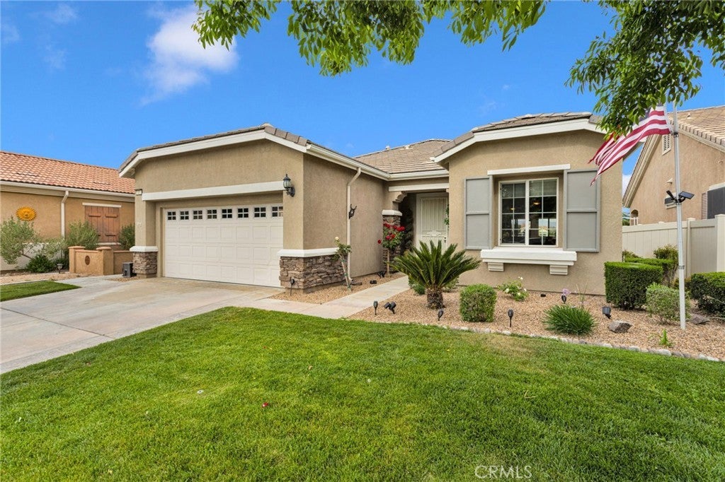 Welcome to this immaculate home in the gated 55+ community of Del Webb Apple Valley, ideally located on a desirable golf course lot. Enjoy wind-protected fairway views that create a comfortable and inviting outdoor setting year-round, along with convenient access to the clubhouse and community amenities. This home truly shows like a model, featuring beautifully cleaned carpets and fresh interior paint throughout. The open, airy floor plan is designed for both comfortable living and effortless entertaining, creating a bright and welcoming space. The primary bedroom closet is enhanced with custom-designed shelving, offering both an upgraded look and exceptional functionality. The garage is thoughtfully appointed with custom upper, lower, and full-height cabinetry, along with extensive built-in storage for organization and ease. The insulated garage door has been recently serviced with new springs and chain, and the motor has been maintained to ensure smooth, reliable operation. Enjoy seamless indoor/outdoor living with the upgraded extended patio, perfectly positioned to take in the protected golf course views—ideal for relaxing or entertaining in comfort. Additional amenities include a garage refrigerator, washer and dryer, living room furniture, and barstools. The home also features cellular shades throughout and a security screen door. Recent upgrades include a newer water heater (approximately 4 years old) and updated toilets. An ADT security system is installed (buyer to activate and connect). Enjoy resort-style living with access to a clubhouse, fitness center, pool, and a vibrant calendar of social events.