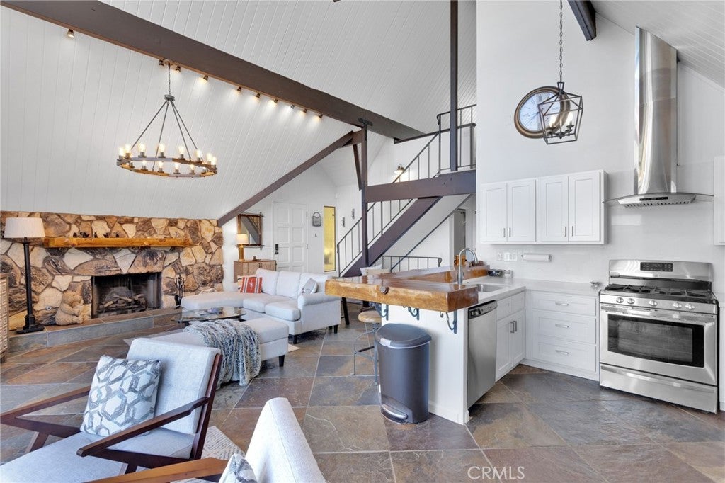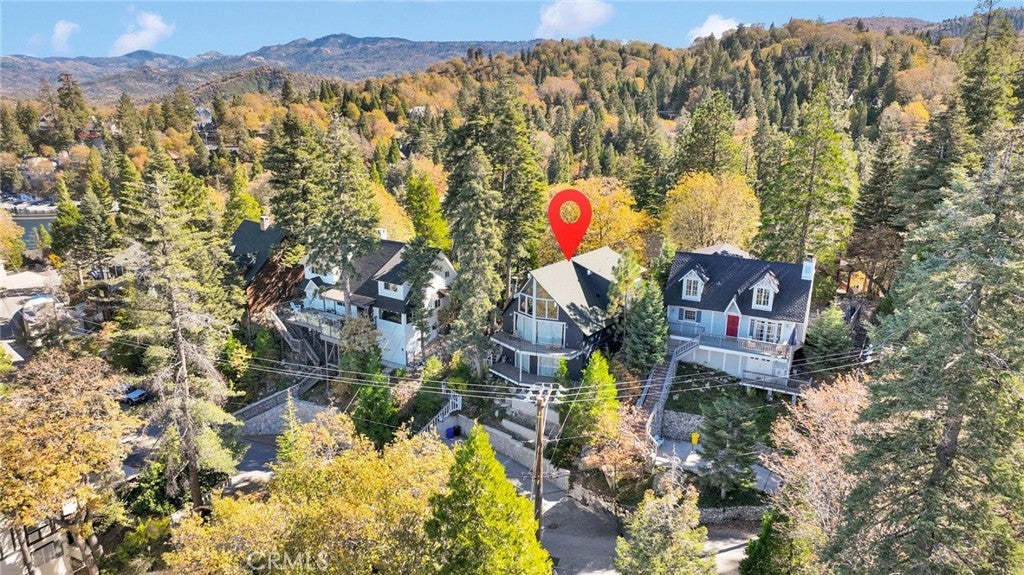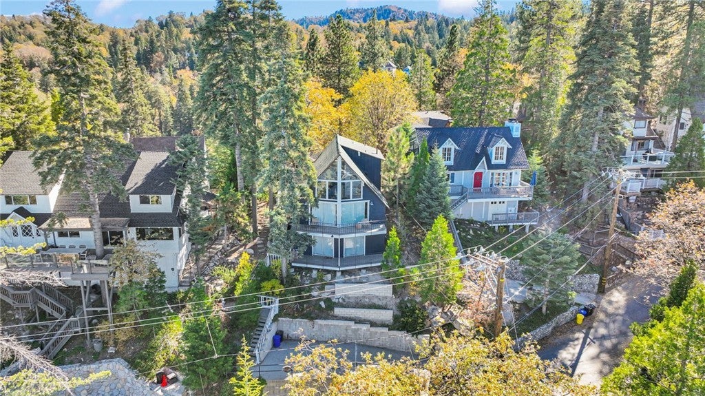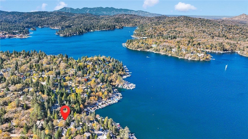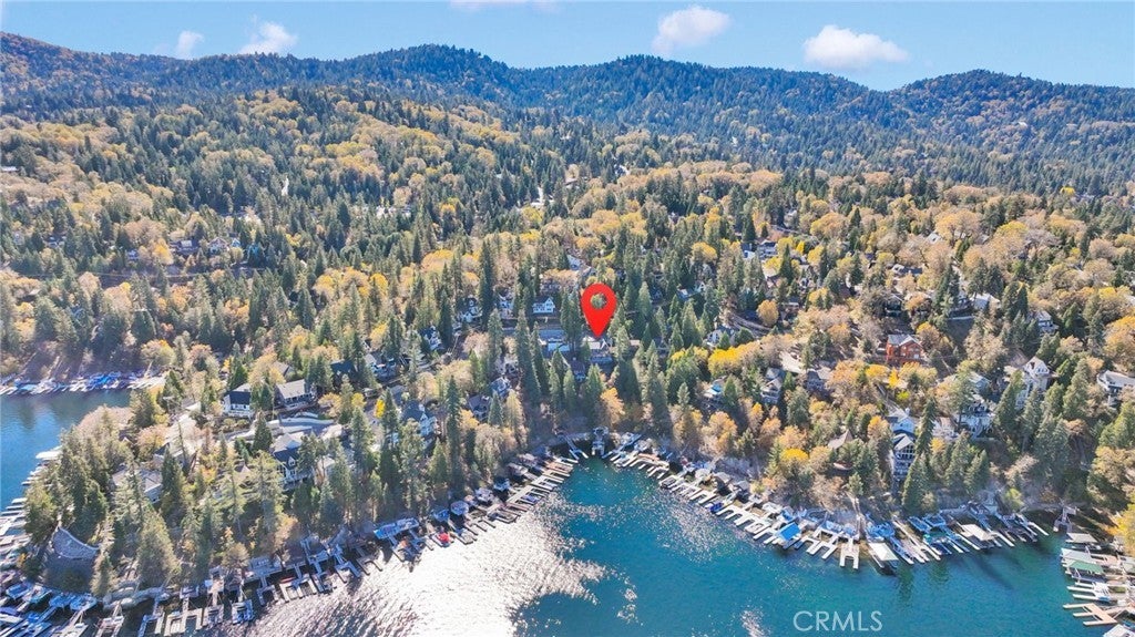 Welcome to 28919 Palisades Dr, Lake Arrowhead, CA 92352 — a fully furnished, recently updated first-tier stunner with amazing lake views! This beautifully remodeled mountain retreat offers approximately 2,016 sq ft of light-filled living space with 3 bedrooms, 2.5 baths, and multiple entertaining areas. Located just across the street from the lake with nearby lake access, you’ll enjoy full lake rights — stroll along the scenic lake trails, launch your boat or kayak, or take a refreshing swim in the crystal-clear waters. From the moment you step inside, you’ll be captivated by the open-concept design, dramatic wall of windows, and soaring wood-beamed ceilings that frame the breathtaking lake views. The spacious living room centers around a stunning stone fireplace, creating a perfect setting for cozy mountain evenings while still enjoying the view of the water. The beautifully updated kitchen is a chef’s dream, featuring new stainless steel appliances, a modern oven hood, custom cabinetry, and a breakfast bar that opens seamlessly to the dining area and living room. Whether you’re entertaining or relaxing, this level is designed for comfort and connection. Step outside onto one of two expansive decks to take in the spectacular views — watch boats drift by, soak in the fresh mountain air, and revel in the glowing sunsets over the water. Also on the main level are two nicely sized bedrooms with large closets and an updated full bath featuring modern finishes. The private master suite occupies its own level and is a true sanctuary. It features soaring ceilings, serene lake views, and a beautifully remodeled ensuite bathroom boasting dual sinks and a frameless glass, zero-threshold shower with a rain shower head — a spa-like retreat in the mountains. On the lower level, you’ll find a spacious family/game room complete with a wet bar, half bath, and laundry area — the perfect space for entertaining guests or relaxing with family. Additional highlights include central A/C, modern updates throughout, and turnkey furnishings, making this home move-in ready and ideal for use as a primary residence, second home, or short-term rental investment. Located in the highly sought-after Cedar Glen enclave, this property is just a short walk to two lake access points and only minutes from the marina, gas dock, and launch ramp, the hospital, and fire station offering the ultimate in Lake Arrowhead lifestyle living.