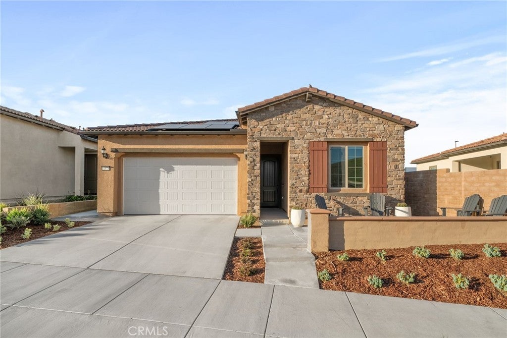 Highly motivated seller!!! Welcome to this beautiful single-story home built by Del Webb with PAID OFF SOLAR located in the highly sought-after 55+ gated community of Terramor. With a variety of ways to enjoy the space, the Bayley floor plan provides more ways to love your new home. From the large gathering space and a covered patio where you’ll entertain to the versatile flex space. Offering 1,364 sq. ft. of thoughtfully designed living space, this home features two bedrooms and two bathrooms, along with numerous upgrades throughout. Step inside to discover upgraded laminate flooring and base molding flowing through the main living areas, beautiful light fixtures, and an open-concept floor plan perfect for entertaining. The inviting kitchen boasts quartz counters, full backsplash, stainless steel appliances, a custom range hood, a five-burner stove, and a large center island with additional seating that seamlessly opens to the spacious family area. The primary suite offers a private retreat with a large walk-in shower, dual sinks, and an oversized walk-in closet complete with custom organization systems. Landscaped to perfection providing a wonderful space to enjoy the California sunshine. Additional highlights include an indoor laundry room with built-in storage, paid-off solar, a Tesla charger, epoxy flooring in the garage, rain gutters, and an outdoor security system. Located within the amenity-rich community of Terramor, residents enjoy access to pools, walking trails, a clubhouse, fitness center, and more. Don’t miss this opportunity to enjoy resort-style living in the heart of Terramor!