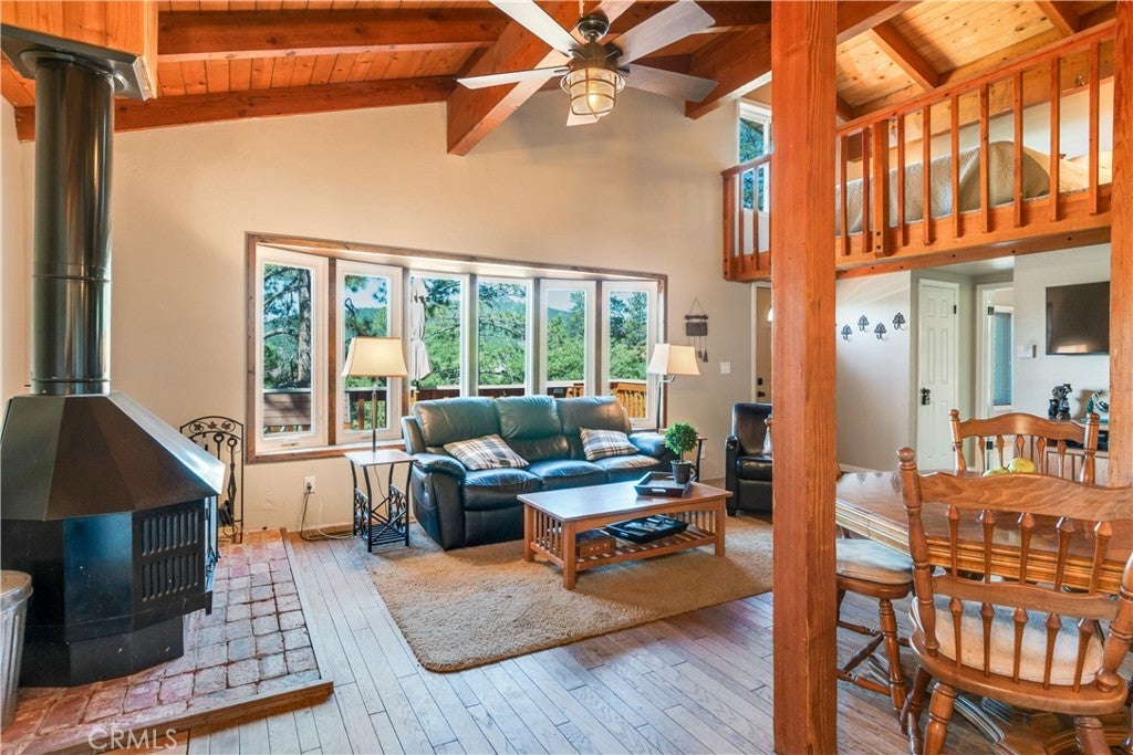 Wake up to the sound of the forest, sip coffee on your deck with south-facing lake and ski-slope views, and step onto trails that connect directly to the Pacific Crest Trail. Spend summer afternoons paddling from Captain John’s Fawn Harbor, then cozy up in winter by the fire after a day at Snow Summit or Bear Mountain. SHORT TERM RENTAL IS ALLOWED. Not regulated by Big Bear Lake, SBCounty permitting is all that is required. Fawnskin offers the peaceful North Shore experience: all the natural beauty of Big Bear without the Village crowds. This inviting home features an estimated 142 square feet of additional loft space, accommodating three twin and one king size bed, perfect for guests or family. Ample storage is available in the spacious basement area. The front deck offers breathtaking views of Big Bear Lake and the north slope of Mt. San Gorgonio, a sight you'll never tire of. Inside, an oversized wood stove, complemented by a gas furnace, ensures warmth and comfort during the winter months. This property has been lightly used, serving as a vacation home since at least 1996, preserving its excellent condition. Lot and dwelling square footage, and other declarations are not guaranteed and should be confirmed by the Buyers and their Agent. This isn’t just a house—it’s a North Shore lifestyle: retreat, recreate, and recharge. Whether you’re looking for a weekend basecamp or a year-round escape, 39576 Oak Glen delivers a rare blend of serenity and access.