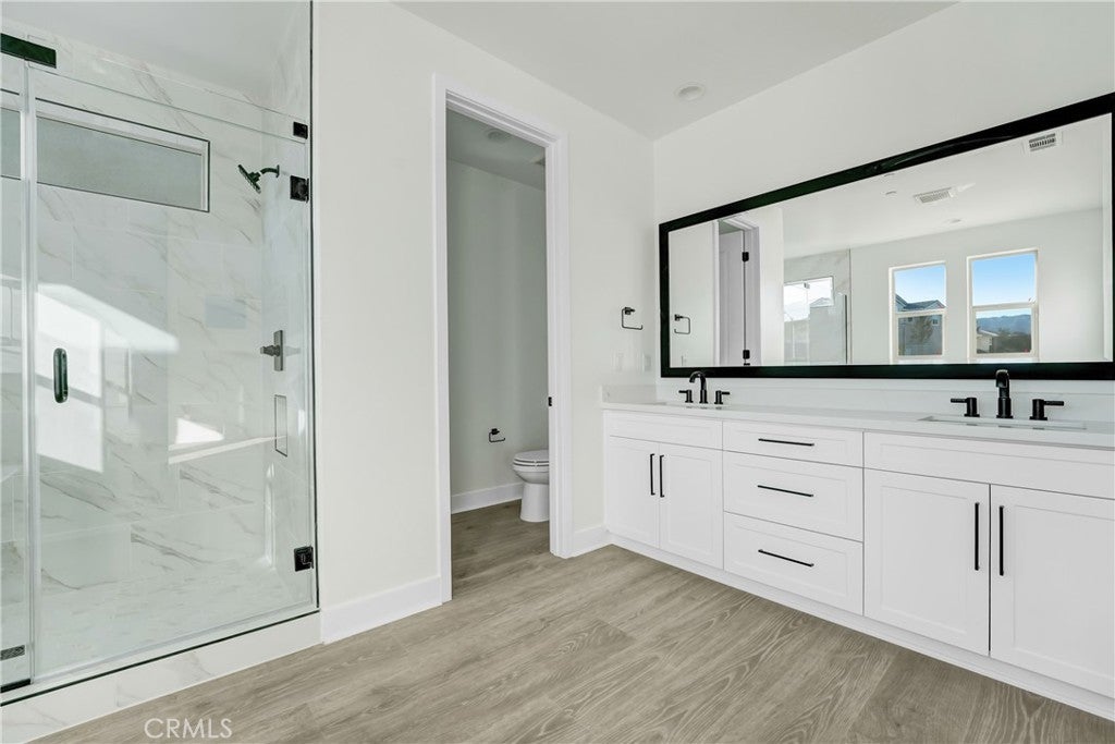 Welcome to your new home at Esprit in Valencia! Greeted by a spacious front porch, walk into this lovely Nathanson plan featuring 4 beds and 3 baths! On the first floor you have the great room, including a separate dining room, spacious living room and a gourmet kitchen featuring a large island. A bedroom with a full bathroom, walk-in pantry and a coat closet can also be found on the first floor and enjoy the outdoors in your lovely side yard complete with a California room! On the 2nd floor you will find the 3 additional bedrooms, including the primary suite which offers separate vanities, a separate tub with a large walk-in shower with seating. There is also a loft, a spacious deck , laundry room with a sink and walk in closets in all secondary bedrooms! Additional features include hardwood flooring throughout, Tesla powerwall 3, built in refrigerator, luxury appliances, upgraded countertops and more!