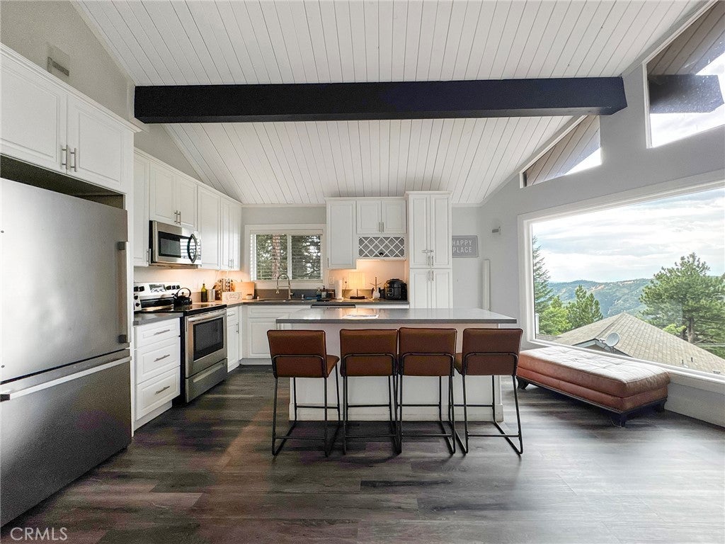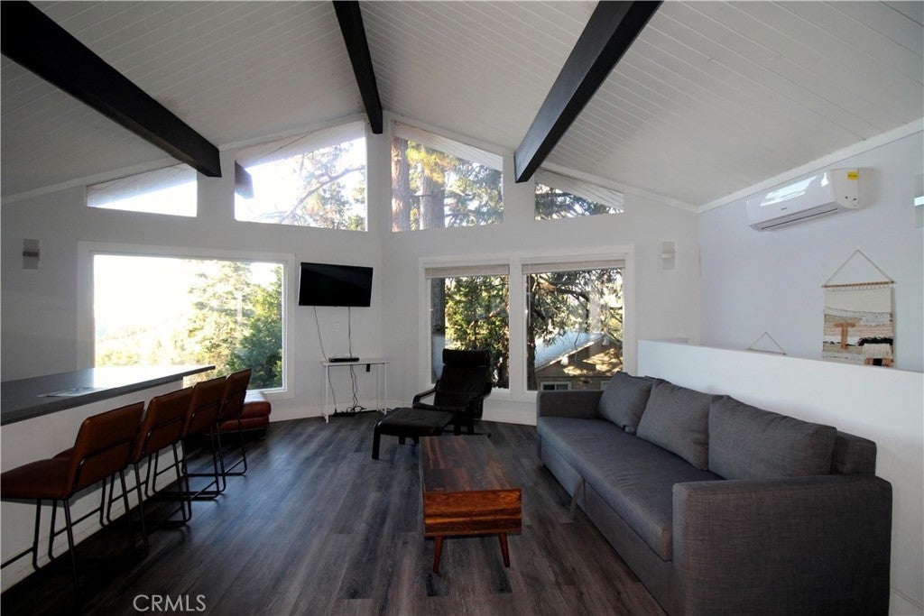 Welcome to 30904 Live Oak Dr in beautiful Running Springs! This charming mountain retreat offers comfort, style, and convenience. With upgraded double-pane windows throughout, the home is filled with natural light—especially in the spacious living room, where expansive windows frame serene surroundings and valley views. The updated kitchen is a chef’s delight, featuring stainless steel appliances, a center island, quartz countertops, and ample space for entertaining. Stay cool in the summer with central A/C, and enjoy the convenience of indoor laundry. Step outside to a welcoming front porch, perfect for morning coffee or relaxing evenings. The low-maintenance deck features composite board construction. The home comes fully furnished, making it truly move-in ready or ideal as a vacation rental. Located in a prime commuter location, it offers quick access on and off the mountain while still embracing the peace and charm of mountain living. Nearby attractions include SkyPark at Santa's Village, offering biking, climbing, zip lining, and year-round holiday magic in a mountain park setting, and Snow Valley Mountain Resort for winter fun. Don’t miss this one—schedule your showing today!