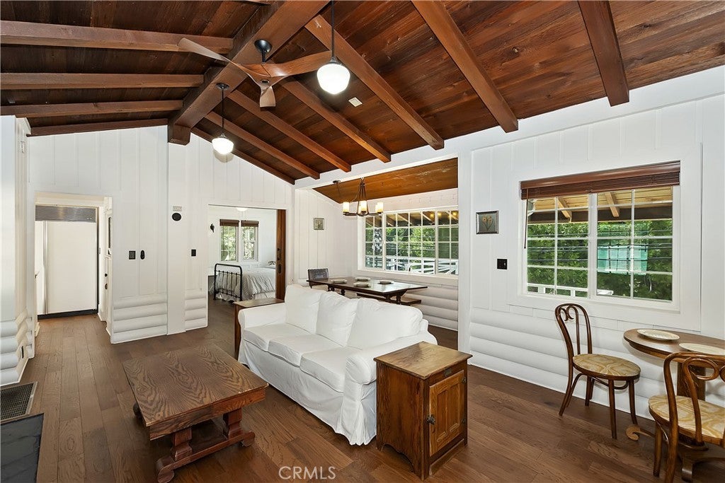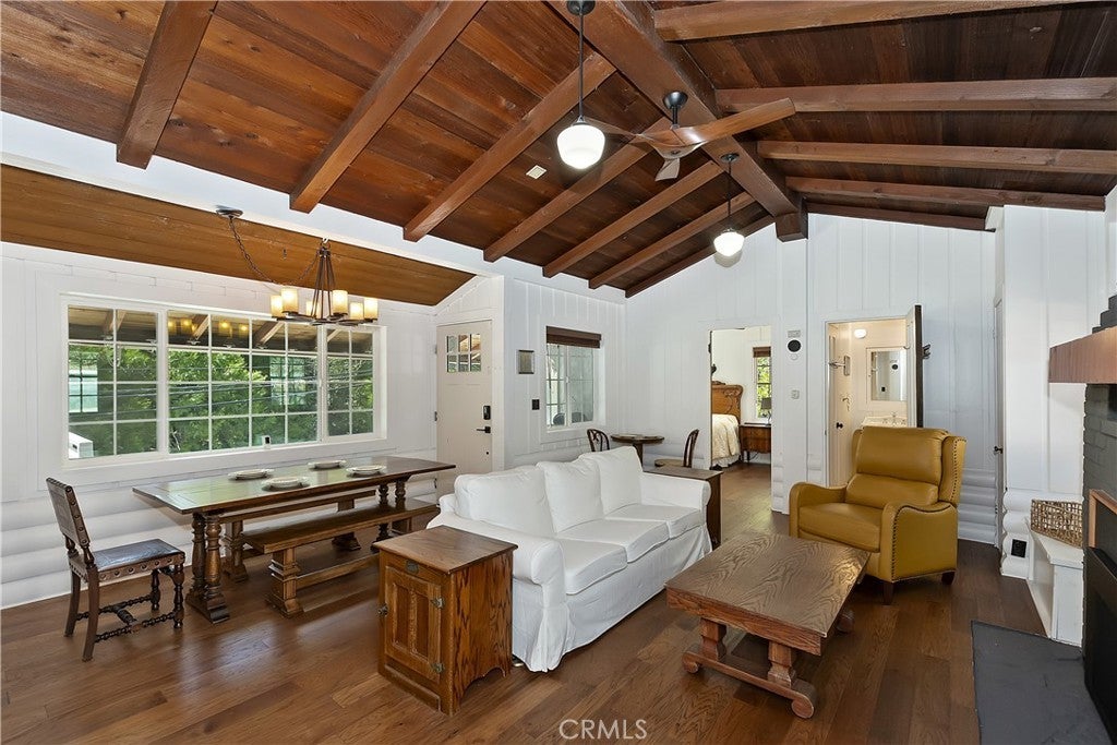 - Interior FeaturesBeamed Ceilings, Cathedral Ceiling(s), Furnished, Living Room Deck Attached, Bedroom on Main Level