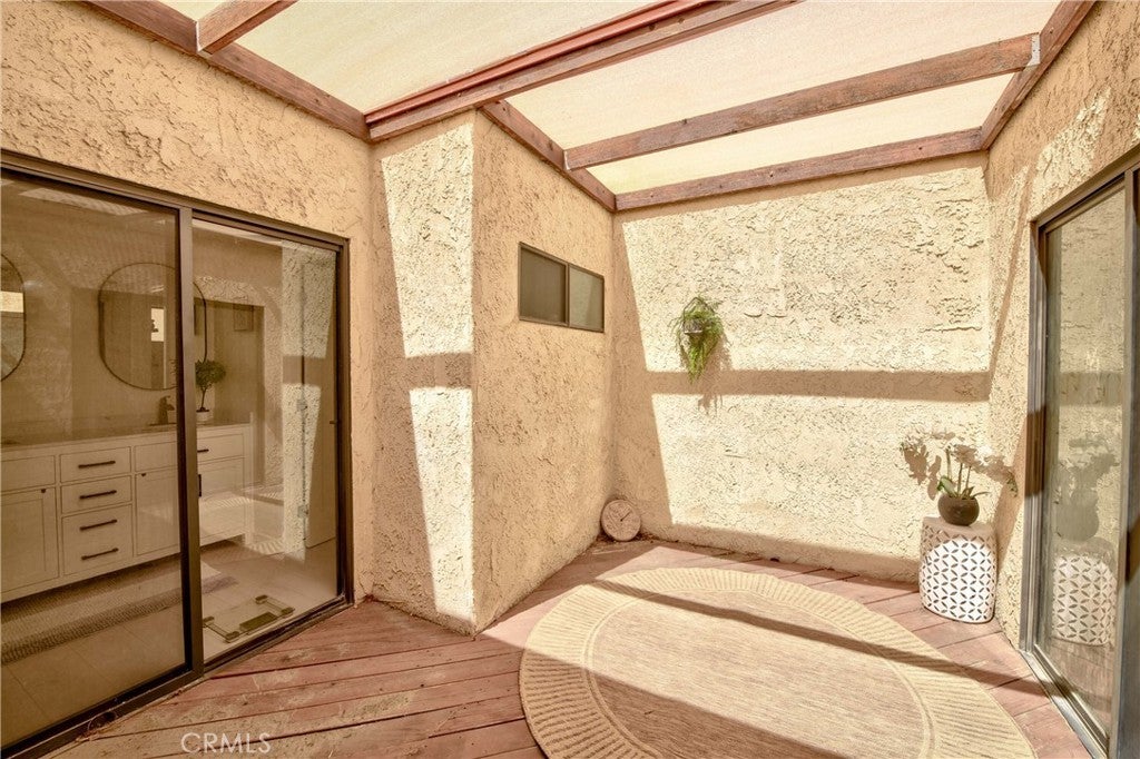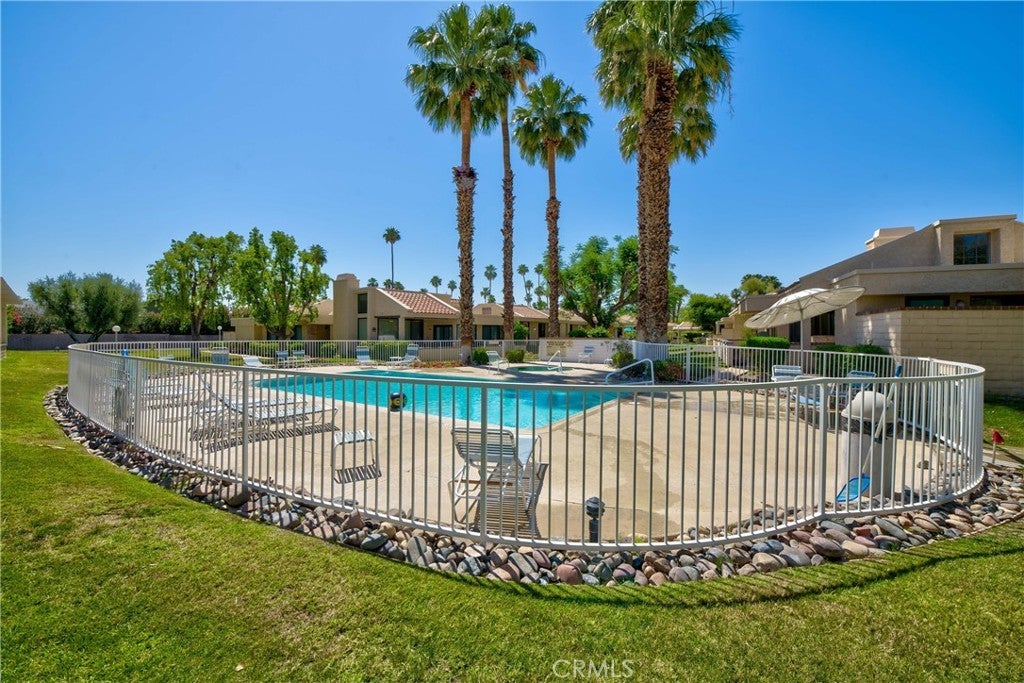 This beautifully remodeled Home has two bedrooms and two baths, feels like two master suites, an atrium that can be used as an office or just a relaxing retreat, enclosed private patio leading to the pool, new full perimeter and interior security system 24 hour cameras with high resolution, all new premium window treatments, built in storage in the garage, all new appliances and fully remodeled less then two years ago, you can feel the pride of ownership from the time you walk in the door. The Community features Pools, tennis courts, clubhouse, golf and much more. It is close to shopping, Palm Springs, the airport and many great restaurant's.
