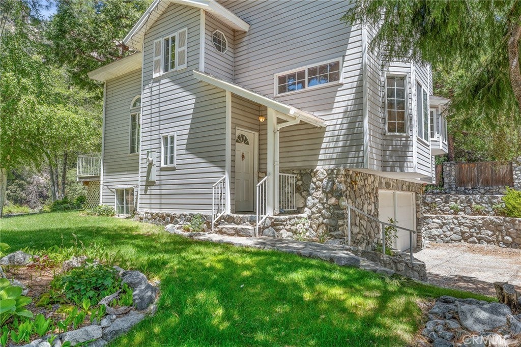 Welcome to your dream residence, perfectly situated in the idyllic community of Forest Falls, where tranquility meets modern elegance. This home is on the market for the first time, offered by its original owners, making it the perfect retreat or family getaway.This home is ready for new memories to be made! Enjoy hiking, rock climbing, taking a stroll, fishing, throwing stones in the creek, mountain biking, going on a picnic or just some peace and quiet. This remarkable home features soaring cathedral ceilings and sturdy 2x6 frame construction, complemented by outstanding R-20 insulation that ensures comfort throughout every season. Bathed in natural light, there is a view from almost every room. This property stands out as one of the few in the area with lush green grass and vibrant flowers, creating an enchanting outdoor atmosphere. Set on a generous half acre lot, includes four additional adjoining parcels at the confluence of Mill and Big Falls Creeks, this property provides a serene escape. Relax on the charming porch, ideal for enjoying the soothing views of the creek. Perched at an elevation of 6,000 feet, Forest Falls is a welcoming community of approximately 1,000 residents, fostering a friendly and cozy mountain environment. Enjoy breathtaking views from every window and gather around the inviting wood-burning stove during cooler evenings. Also the home offers a large indoor laundry room. Located just 30 minutes from Redlands, California, this exceptional property includes a spacious two-car garage and offers convenient access without the hassle of winding roads. Immerse yourself in the beauty of nature in this tranquil sanctuary, where every day feels like a peaceful retreat. Don’t miss your chance to make this mountain haven your own!