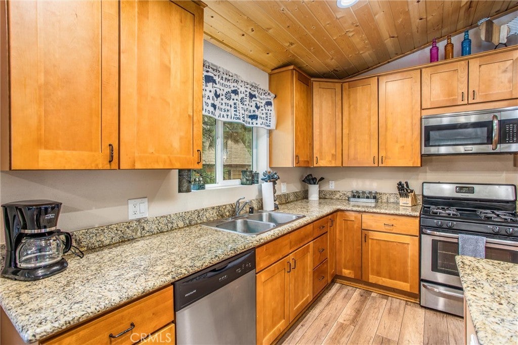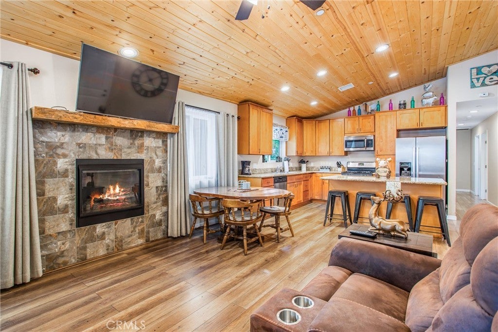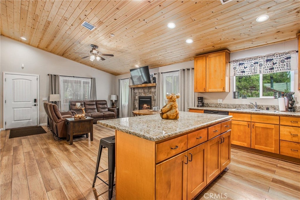 Welcome to one of Sugarloaf’s rare newer-construction homes—built in 2016 and offering the space, comfort, and modern layout that most cabins in this area simply don’t have. Situated on an oversized 7,500 sq ft lot, this turnkey, fully furnished 4-bedroom retreat is ready for full-time living, a mountain getaway, or a profitable vacation rental. Enjoy a bright, open-concept great room with vaulted ceilings, a cozy fireplace, and a spacious kitchen with island seating—perfect for gathering after a day on the slopes or trails. All four bedrooms and both bathrooms are conveniently located on a single level, a feature that is exceptionally hard to find in Big Bear’s mountain neighborhoods. Bring your toys and gear! The full-size two-car garage is a standout feature in Sugarloaf, ideal for storing boats, snowboards, bikes, or creating a game room as the current owners have done. Outside, the fenced yard, level lot, pergola, and spacious deck offer a peaceful escape for BBQs, entertaining, or relaxing under the pines. Located just minutes from Big Bear Lake, ski resorts, hiking/biking trails, and charming local shops, this home blends convenience with mountain living at its best. With newer construction, modern systems, a sprinkler system for added safety, and all furnishings included, this property delivers incredible functionality and value in one of Big Bear’s most accessible communities. Turnkey. Spacious. Modern. A rare Sugarloaf opportunity.