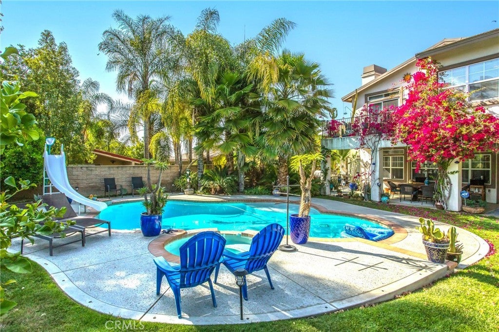 Exquisitely, a home to enjoy and treasure with your family and friends. Every amenity on your list is encompassed in this property. With five bedrooms + multi-purpose room (could be a 6th bedroom) and 4 bathrooms there is plenty of room for all! As you enter there is a parlor style living room and formal dining. Proceeding to the kitchen your gourmet juices become elevated ...Island, eat-at counter, desk/bookcase nook, stainless steel appliances all "Open Concept" to the family room with stone fireplace/built-in cabinetry and additional eating area. Upstairs loft lends for a multitude of possibilities and uses. Primary bedroom has a stone fireplace, balcony looking to the rear yard and en-suite.....Also on the second level are the unique double Jack-n-Jill spare bedrooms....Other pleasantries include, indoor laundry room, potec-cochere + three car garage with drop zone at the entry to the home...AND...Much Much More!.... Oh wait a minute here! We have not mentioned the backyard.....Blessed with a sparkling pool & spa, expansive covered patio and lushly landscaped grounds! All this is conveniently located in the coveted planned development of "Chanteclair" .... Low HOA and no Mello Roos/Cdf.... Only for those who appreciate warmth, charm and all that a home has to offer.