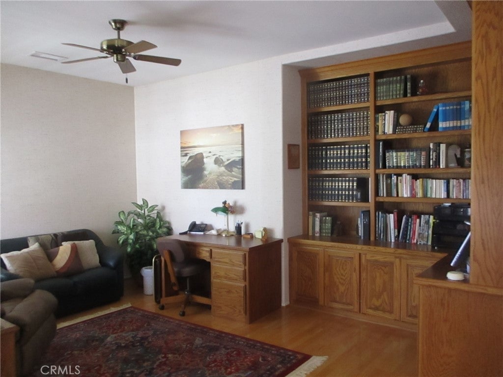 Beautiful Turnkey East Facing Home in The Colony a 55 plus Gated Community. Enter the 2 BD 2.5 Ba Home through your own gated courtyard. Step into the home through the formal living room area with a den office to the left, with elegant built in bookshelves. Notice the beautiful blonde wood floors. The dining, kitchen and great room area are located in the back of the home with a gorgeous marble fireplace. The kitchen is equipped with an island and gas cook top, and adorned with granite counter tops. Plenty of counter and cupboard space for chef's needs! The Ensuite is located towards the back of the home adorned with a Cove wall and windows for additional natural light. The Ensuite has a walk in closet with a skylight. The guest bedroom is located in the front of the home. Off the Great room is the entrance to the backyard patio area adorned by a wood covered area great to keep the summer sun and fall rain off while entertaining. Conveniently, there is Two car garage with an additional GOLF CART GARAGE. This home is one to put on your list to view!