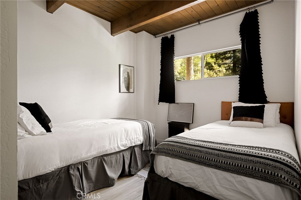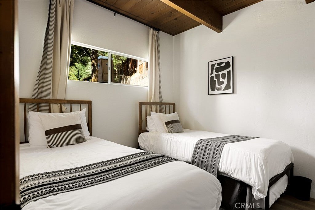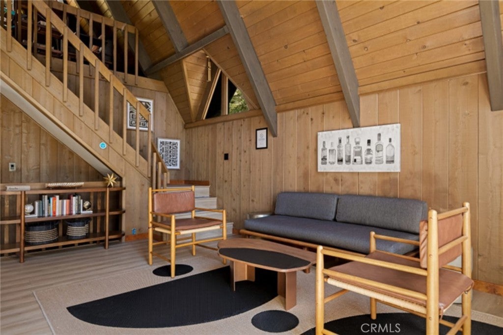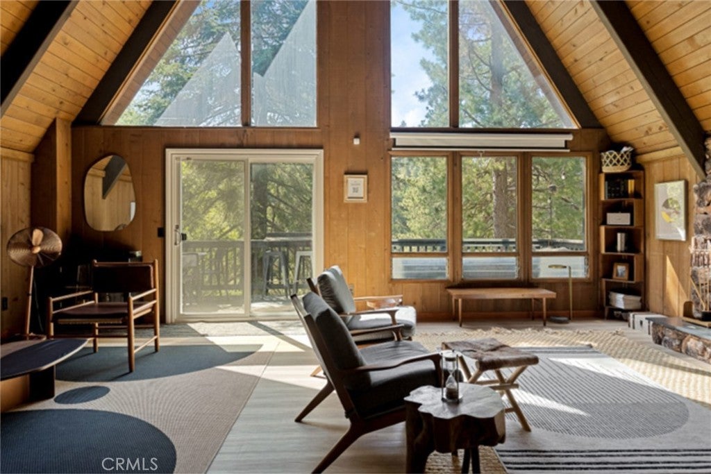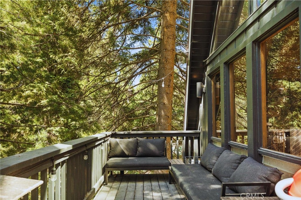 Tucked beneath the pines in beautiful Lake Arrowhead, this vintage 1970s A-frame cabin blends classic mountain character with tasteful updates. The exterior features the striking silhouette of a flat-faced prow, with its bold roofline, redwood fencing, and strong architectural lines that give this home standout presence. Inside, you’ll find soaring wood-beam ceilings and sunlight streaming through large triangular windows signature elements of the coveted prow-style design. A classic stone fireplace adds charm to the living area and connects naturally to the open dining space and thoughtfully updated kitchen, which includes open shelving and warm wood accents. Upstairs, a spacious loft-style game room offers flexibility for additional living space or recreation. The bathrooms have been beautifully updated with clean lines and modern finishes, thoughtfully designed to complement the home’s rustic touches. And just when you think it couldn't get better, the property also features a seasonal creek that adds to its serene charm, along with central AC to keep things cool and comfortable year round. The outdoor deck provides space to enjoy the peaceful wooded surroundings, with mature trees and fresh mountain air creating a calming natural backdrop. This property also includes Lake Rights, giving owners access to Lake Arrowhead’s private amenities, including beaches, trails, and lake activities. Additional highlights include level-entry access a rare and sought-after feature in the area as well as a history of strong short-term rental performance. This well-maintained property offers a unique blend of mountain charm and modern comfort in one of Southern California’s most desirable alpine communities.