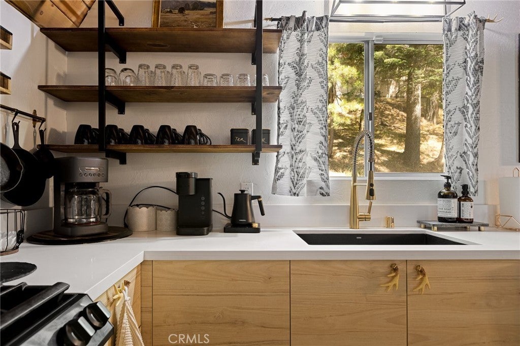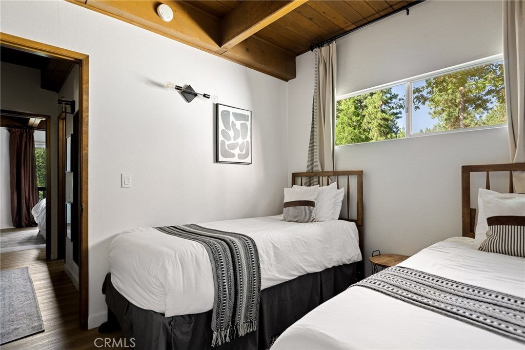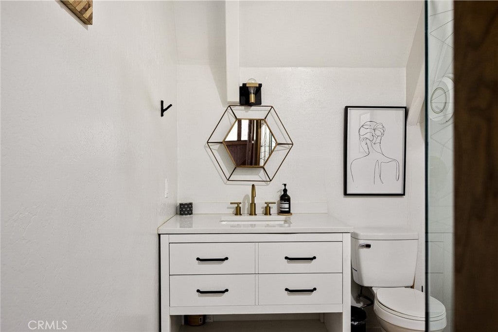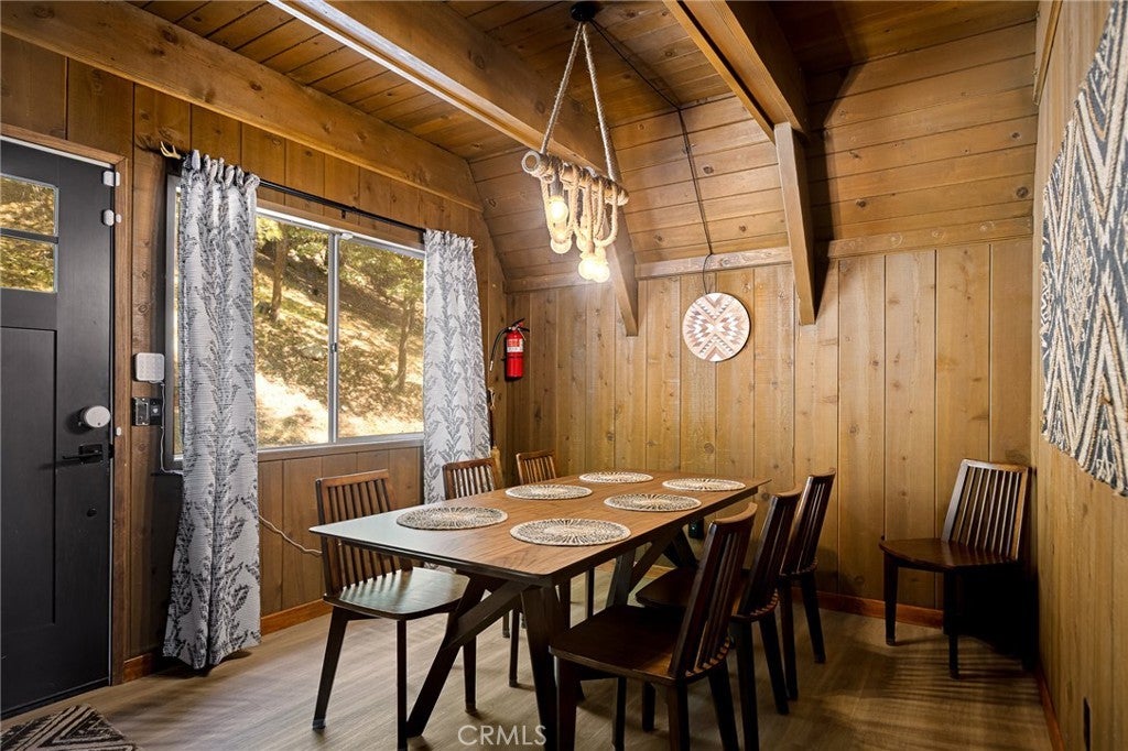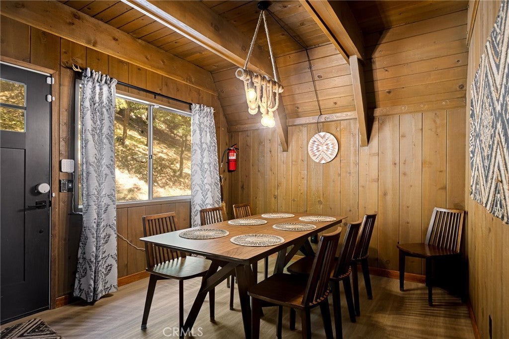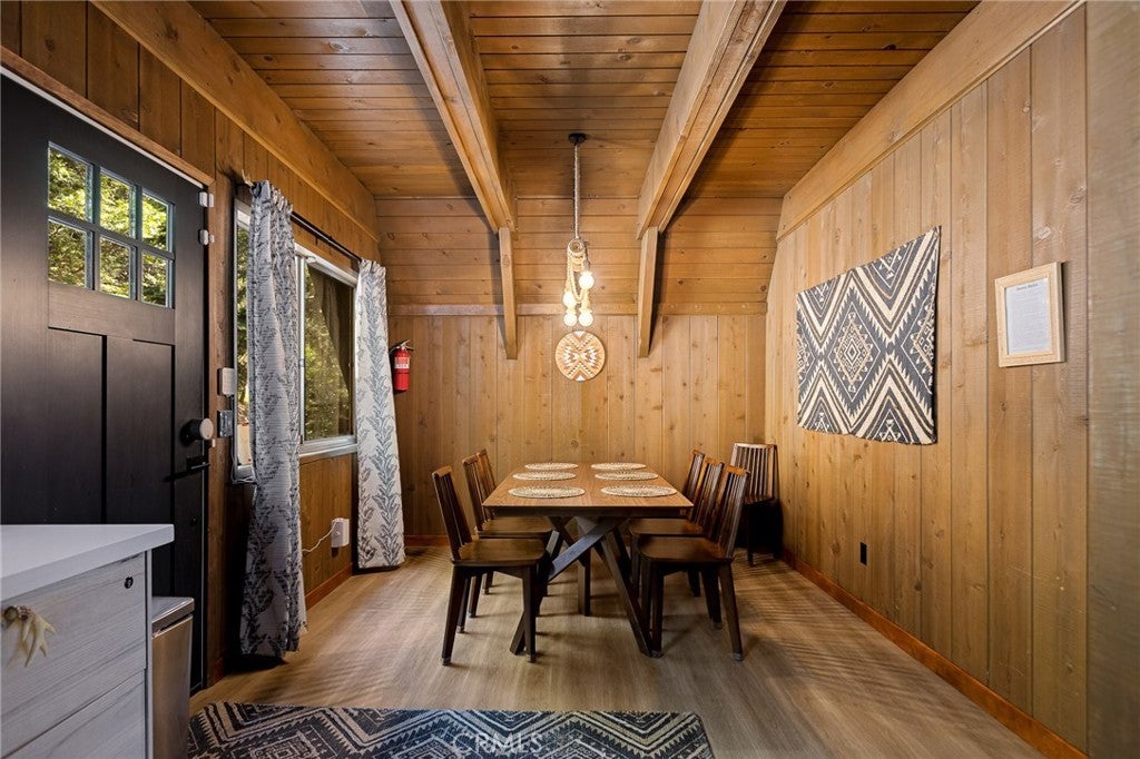 Tucked beneath the pines in beautiful Lake Arrowhead, this vintage 1970s A-frame cabin blends classic mountain character with tasteful updates. The exterior features the striking silhouette of a flat-faced prow, with its bold roofline, redwood fencing, and strong architectural lines that give this home standout presence. Inside, you’ll find soaring wood-beam ceilings and sunlight streaming through large triangular windows signature elements of the coveted prow-style design. A classic stone fireplace adds charm to the living area and connects naturally to the open dining space and thoughtfully updated kitchen, which includes open shelving and warm wood accents. Upstairs, a spacious loft-style game room offers flexibility for additional living space or recreation. The bathrooms have been beautifully updated with clean lines and modern finishes, thoughtfully designed to complement the home’s rustic touches. And just when you think it couldn't get better, the property also features a seasonal creek that adds to its serene charm, along with central AC to keep things cool and comfortable year round. The outdoor deck provides space to enjoy the peaceful wooded surroundings, with mature trees and fresh mountain air creating a calming natural backdrop. This property also includes Lake Rights, giving owners access to Lake Arrowhead’s private amenities, including beaches, trails, and lake activities. Additional highlights include level-entry access a rare and sought-after feature in the area as well as a history of strong short-term rental performance. This well-maintained property offers a unique blend of mountain charm and modern comfort in one of Southern California’s most desirable alpine communities.