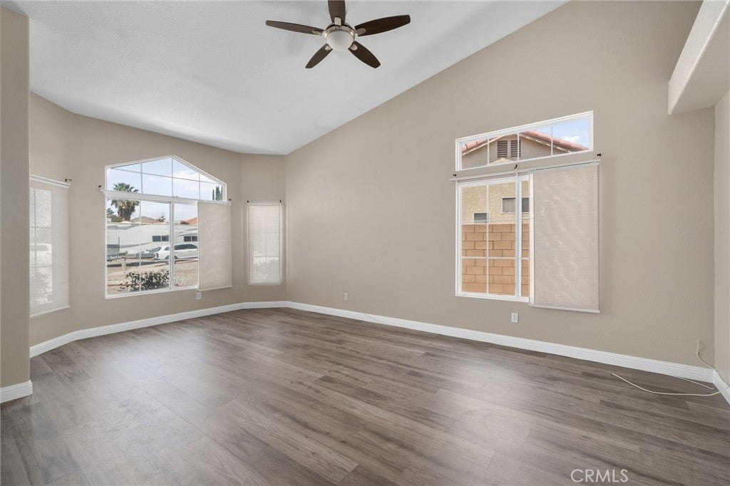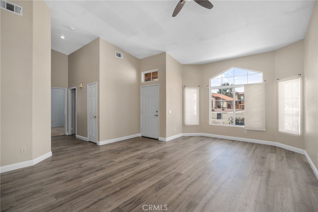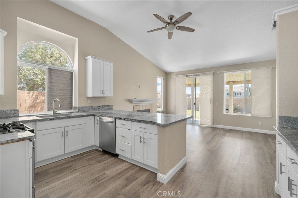 Welcome to your new place to call home, where comfort and style come together seamlessly. Step inside to discover large vaulted ceilings with an abundance of natural light. This property features brand new vinyl flooring and baseboards through the living room, kitchen family room and down the hall to the three bedrooms creating a fresh and modern feel. The updated kitchen is a chef’s dream, featuring brand new cabinets, sleek granite countertops, and plenty of space to cook and entertain. With the open kitchen/living concept into the family room makes it the perfect space to entertain guests. Complemented by a cozy fireplace and ceiling fans throughout the home for year-round comfort. The spacious master suite includes a walk-in closet, an ensuite bath, and direct access to the backyard through a private sliding door. Outside, enjoy the low-maintenance, drought-tolerant landscaping with beautiful artificial turf and a large covered patio perfect for relaxing or entertaining. A generous three-car garage offers ample parking and storage, and the backyard also includes a sizable shed for all your extra tools and toys. This home truly has it all—style, function, and plenty of space to enjoy.