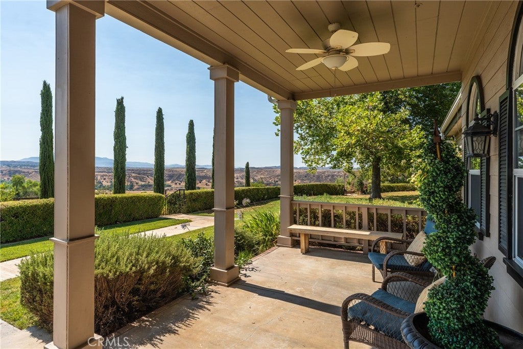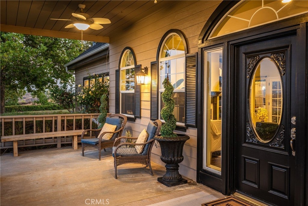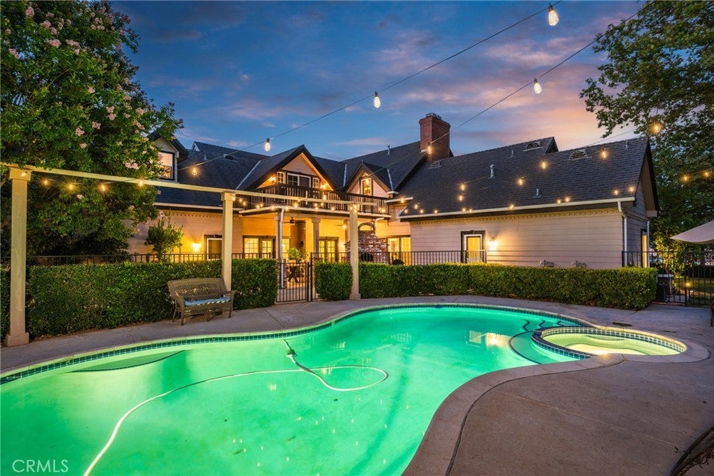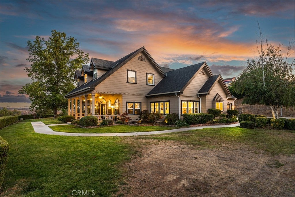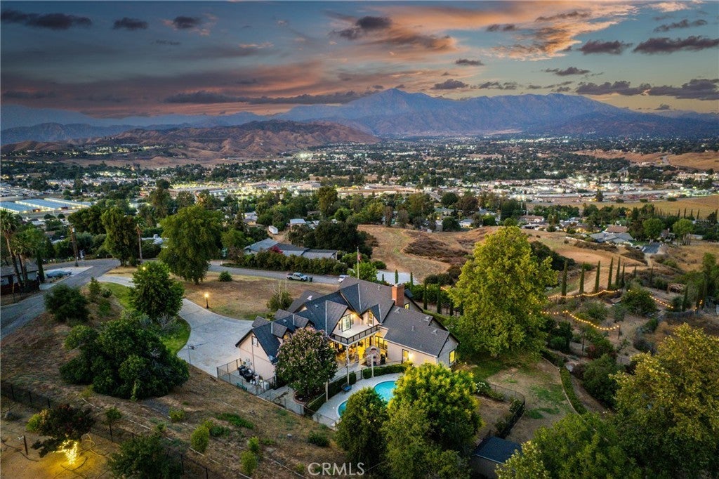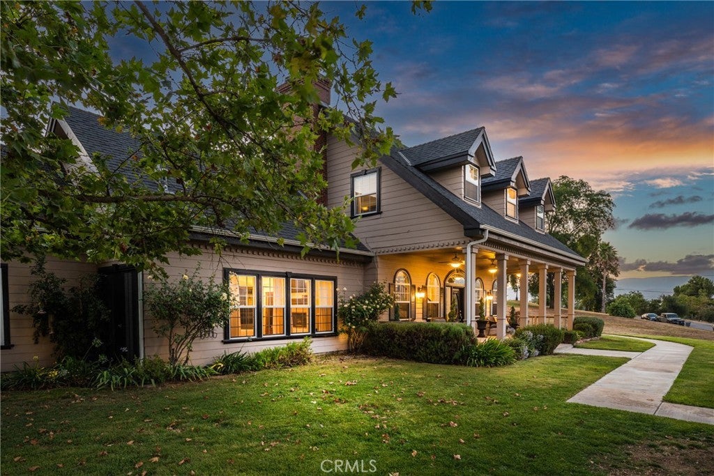 Welcome to this stunning Cape Cod-style estate nestled in the prestigious hills of Redlands, offering nearly 3 acres of privacy, panoramic mountain and canyon views, and incredible indoor-outdoor living. With over 130 fruit, citrus, avocado, olive, and pecan trees, plus raised garden beds, this home is ideal for those seeking a self-sustaining lifestyle. A lower orchard area with a stage and seating creates a unique venue-ready space for events, gatherings, or peaceful retreats. Inside, the home offers 3,431 sqft (plus an additional 600 sqft loft with a theater and bonus room), featuring dual primary suites on both levels. The heart of the home is the dream gourmet kitchen, a true chef’s haven, designed with stone countertops, custom cabinetry, luxury stainless steel appliance (Subzero Fridge, Wolf Ovens, Viking Stove and warming drawer), and a massive center island perfect for entertaining, prepping, or gathering around with loved ones. Its open layout flows seamlessly into the main living area, creating a warm and welcoming space. You’ll also find rich hickory hardwood floors, tile bathrooms, and an abundance of natural light throughout. Step outside to your private oasis featuring an in-ground pool and spa, brick wood-fired pizza oven, and multiple patios that capture the breathtaking views. Additional highlights include fully owned solar panels, three Tesla Powerwall batteries, seven water shares, a 3-car garage, and extended driveway parking. Located in the sought after Redlands Community, this one-of-a-kind estate offers luxury, sustainability, and space all in one breathtaking package. Don't miss your chance to own one of Redlands’ most iconic homes.