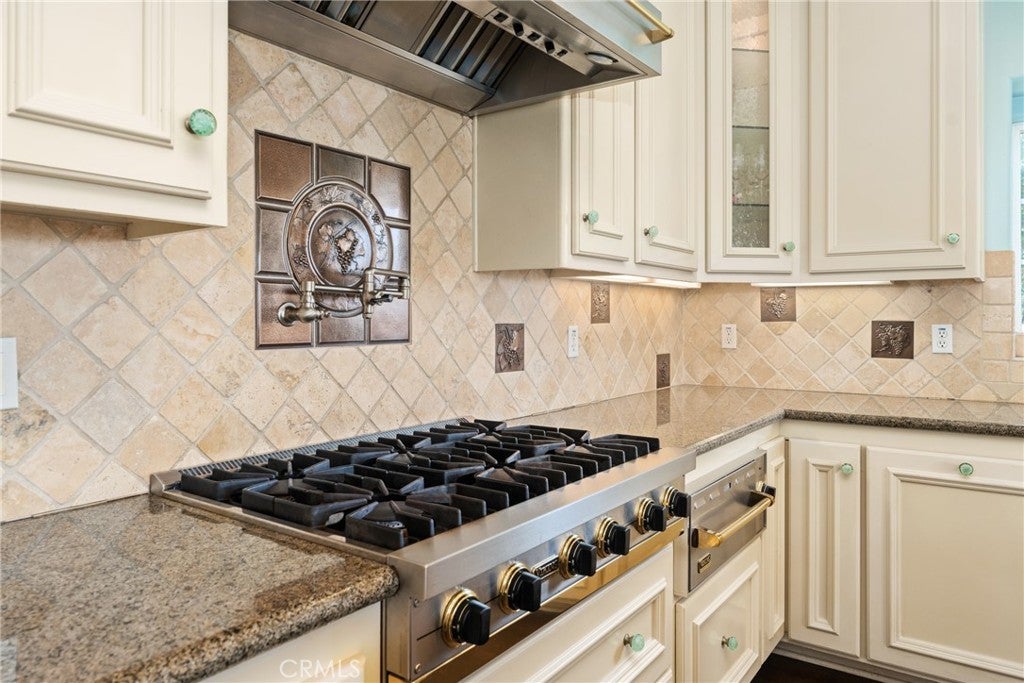 • AppliancesDouble Oven, Dishwasher, Disposal, Gas Range, Range Hood, Self Cleaning Oven, SixBurnerStove, Vented Exhaust Fan, Warming Drawer