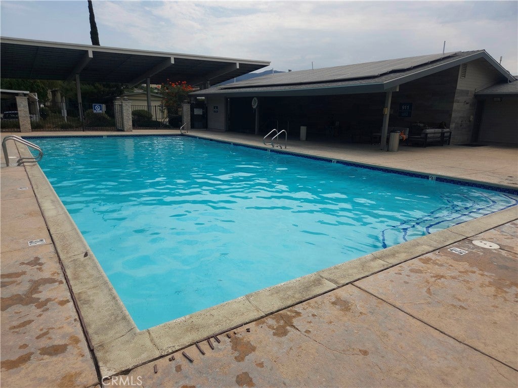 3 bedroom, 2 bathroom home in a gated mobile home community. Lots of windows to let the light in. Spacious living room. Porch on side of home. Community amenities include pool, hot tub, fitness rooom, library, billiard room, TV room and community room with kitchen. Close to FWY and shopping center.
